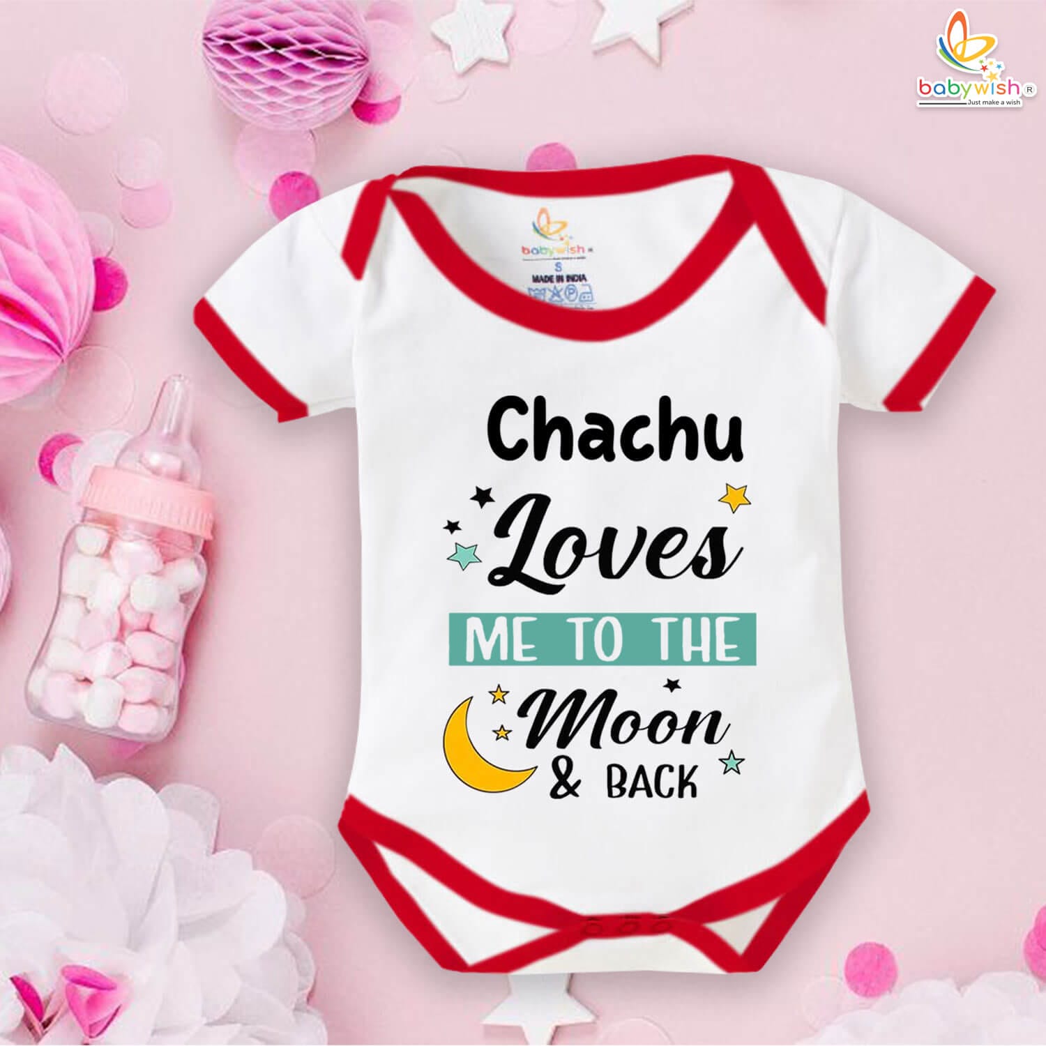 Welcome the newest little star with this adorable “Chachu Loves Me to the Moon & Back” Babywish Romper, specially crafted for newborn comfort and gifting perfection. Made with ultra-soft premium cotton, this half-sleeve bodysuit keeps your baby cozy, irritation-free, and stylish all day long. The cute moon & stars print celebrates the special bond between a baby and their beloved chachu, making it an emotional yet practical gift for baby arrival, naming ceremonies, baby showers, and newborn photoshoots.