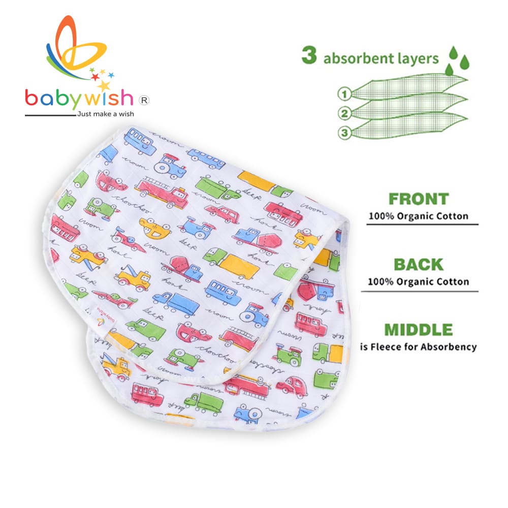 Babywish Organic muslin Burp cloths can be used in a multitude of ways. Perfect for protecting your clothing when burping little ones, wiping up sticky messes, as a breast feeding cover up, for teething, dribbling babies. catches every spill from reaching your clothes, or from dripping onto the floor, saves a lot of cleaning efforts. Made with 100% organic cotton on both sides of the burp cloth, it is safe for your newborn baby sensitive skin.