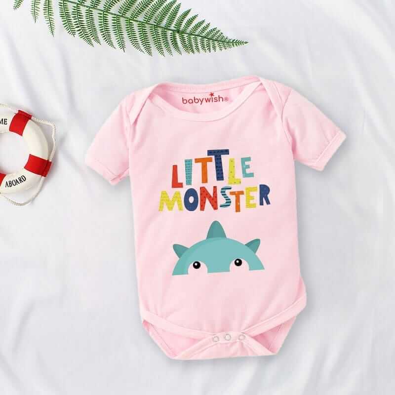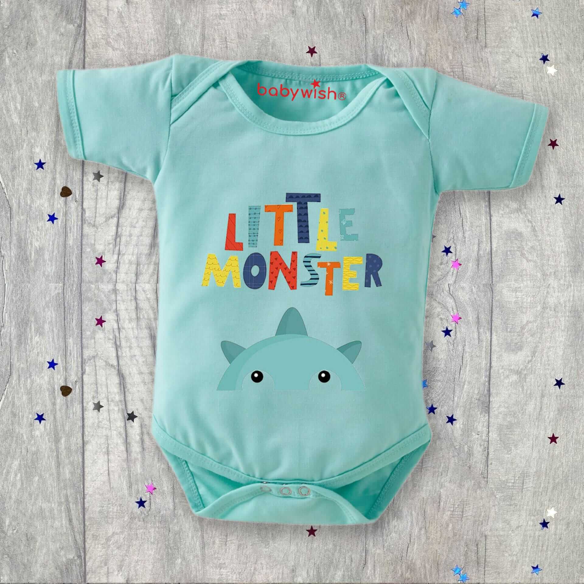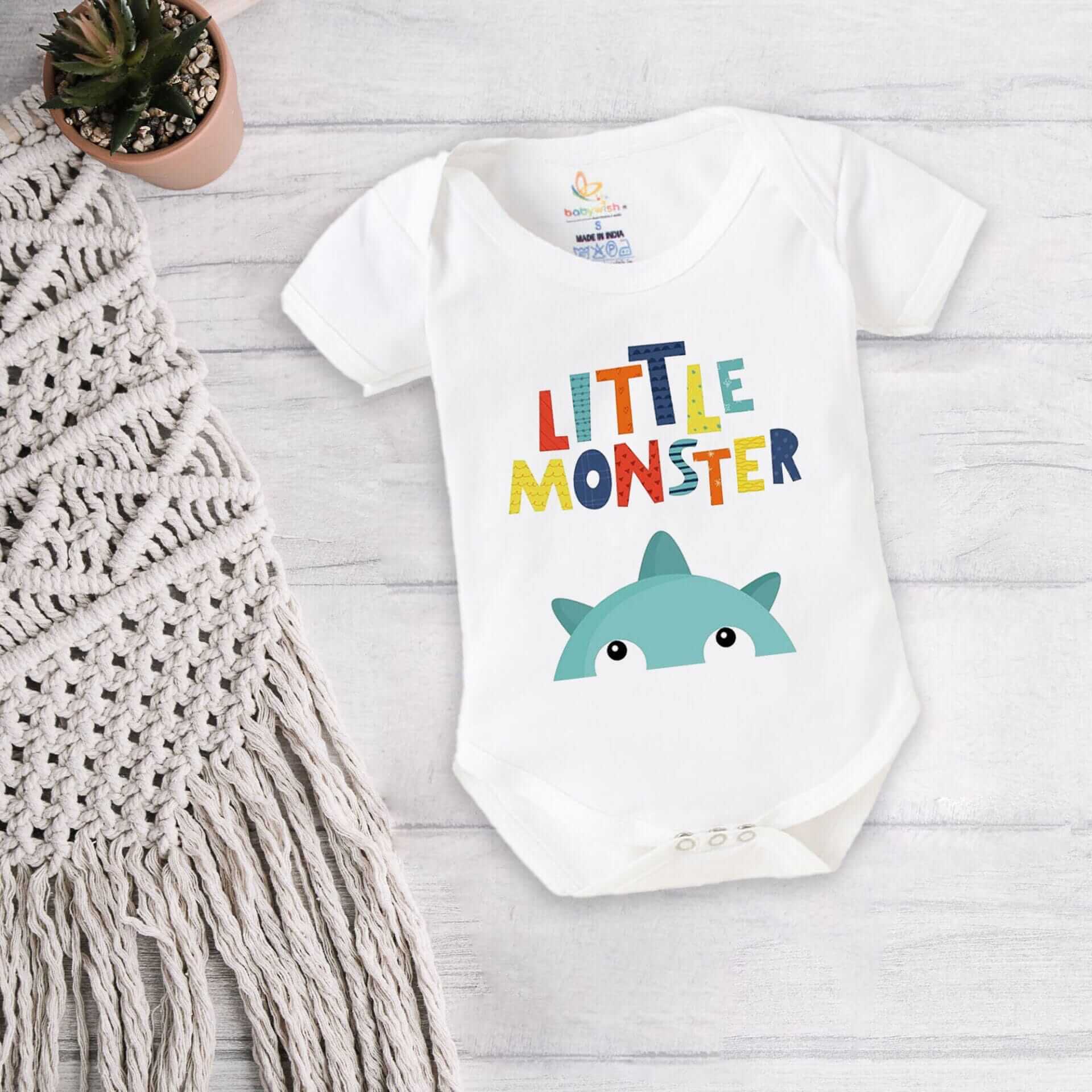 Baby First Birthday Romper Clothes for Newborns – Half Sleeve Bodysuits, Unisex Onesies with Envelop Neck, Adorable “Little Monster Theme” Design