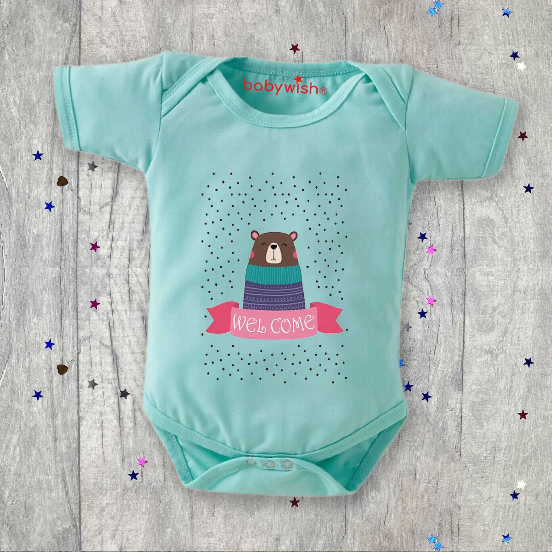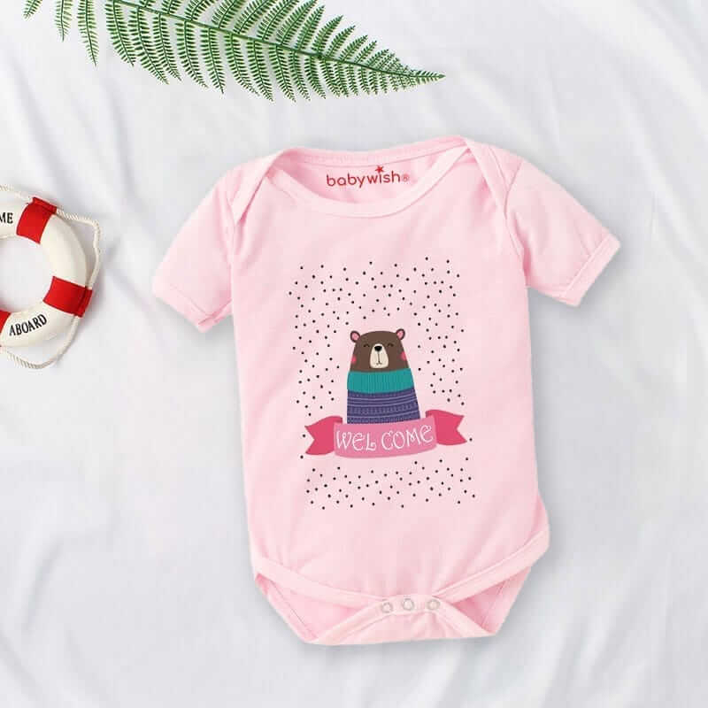 Baby First Birthday Romper Outfit for Newborns – Half Sleeve Bodysuits, Unisex Onesies with Envelop Neck, Cute “Welcome Beer Print” Design