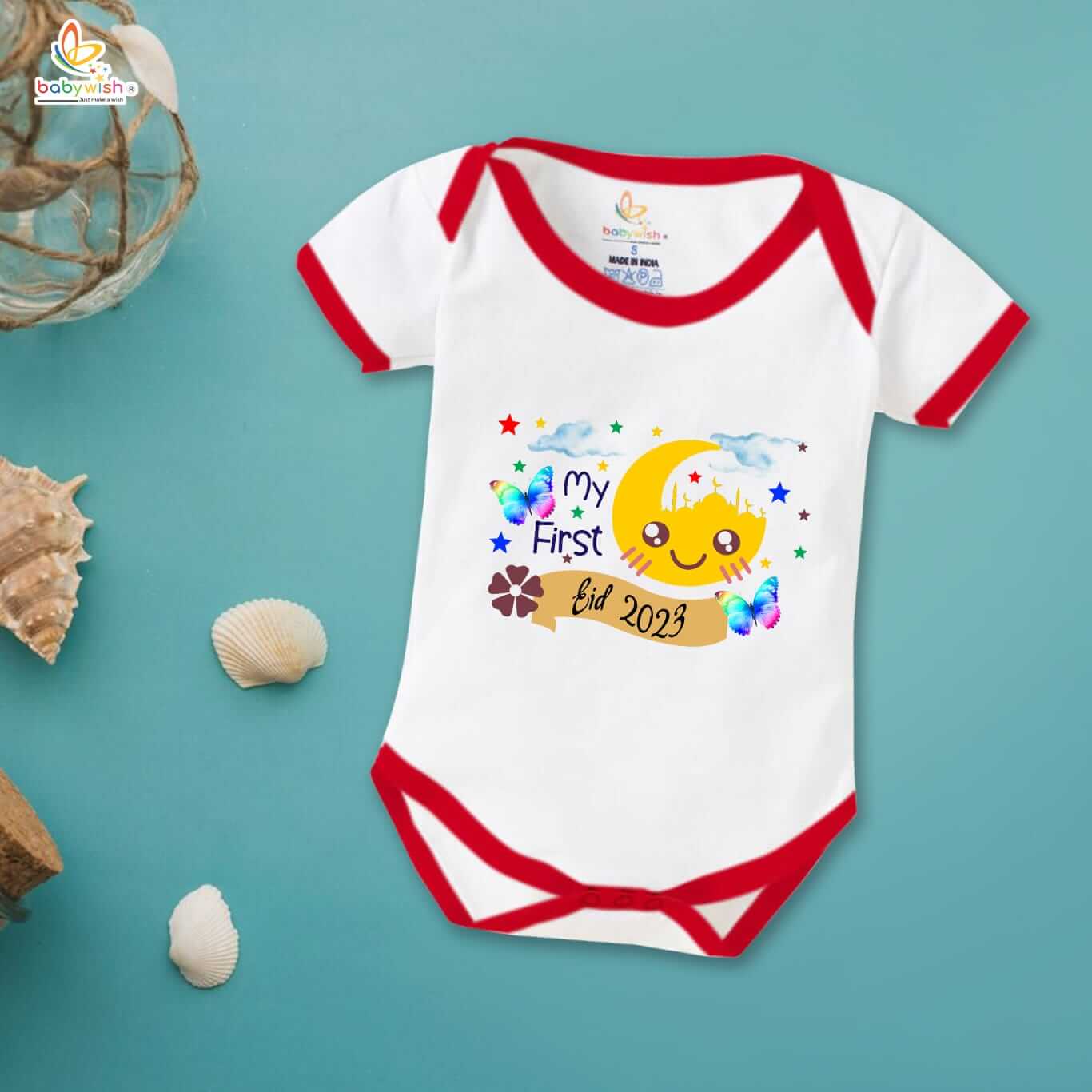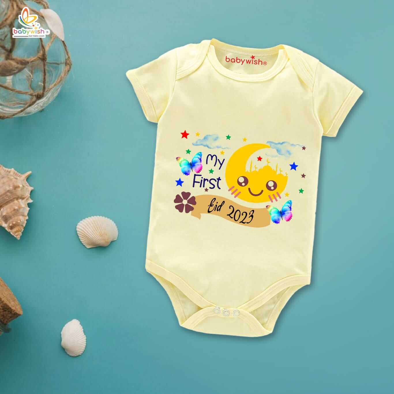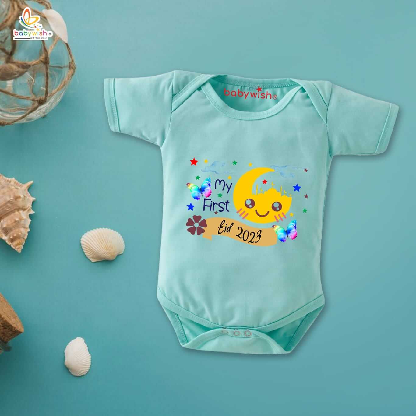 Baby First Eid Romper Clothes | Newborn Ramadan & Eid Festival Bodysuits | Unisex Half Sleeve Onesies for Infants | “First Eid Festivals in 2023”