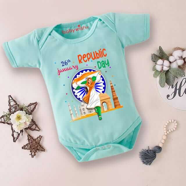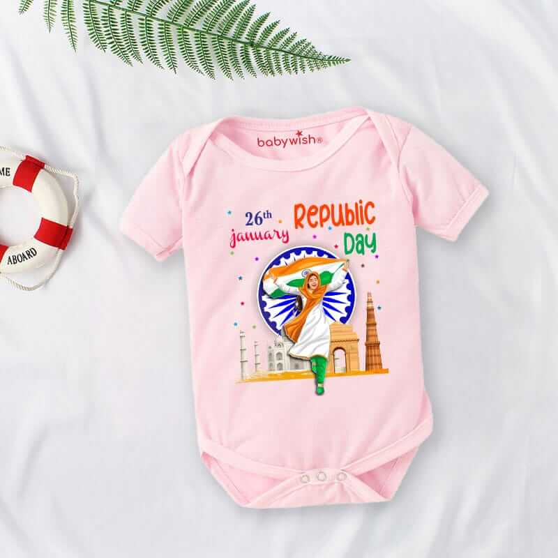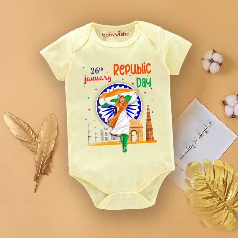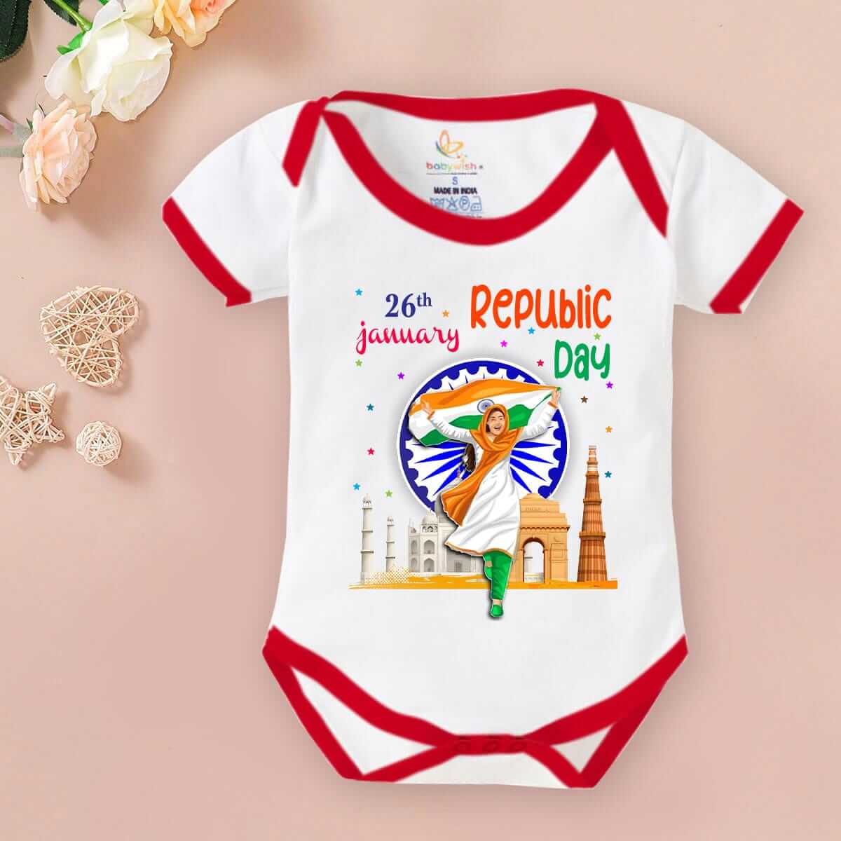 Baby First Republic Day Romper Clothes Baby Bodysuits Newborn Outfit Envelop Neck Half Sleeve Unisex Onesies”Happy Republic Day”