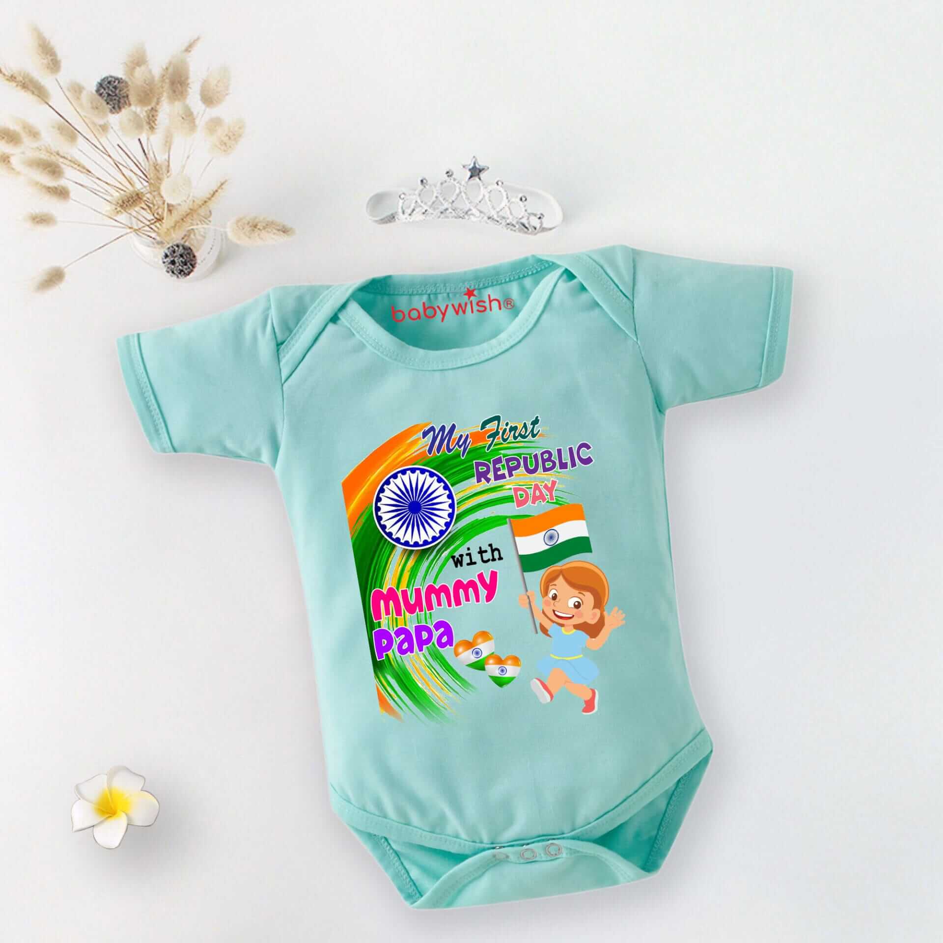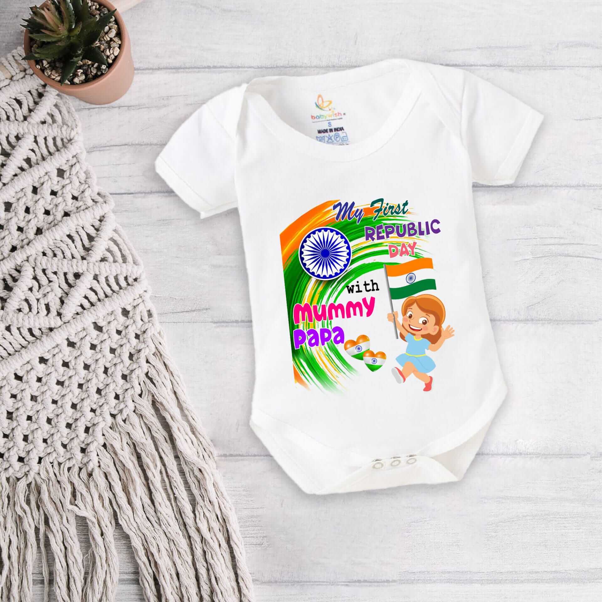 Baby First Republic Day Romper Clothes Baby Bodysuits Newborn Outfit Envelop Neck Half Sleeve Unisex Onesies”Happy Republic Day”