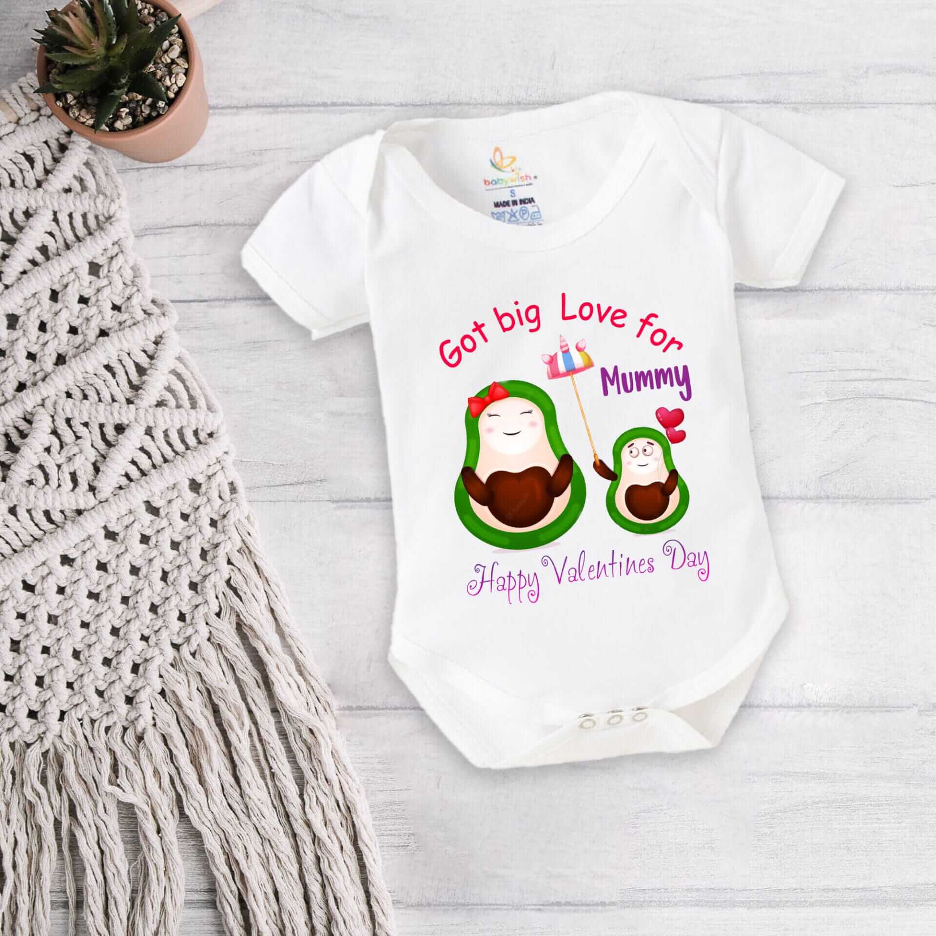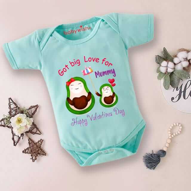 Baby First Valentine’s Day Romper Clothes | Baby Valentine Bodysuits | Newborn Outfit Envelope Neck Half Sleeve Unisex Onesies “Got Big Love For Mummy” | Cute Baby Gift Romper for Boys & Girls