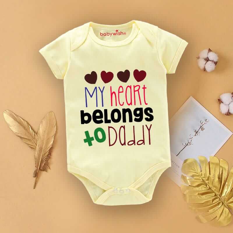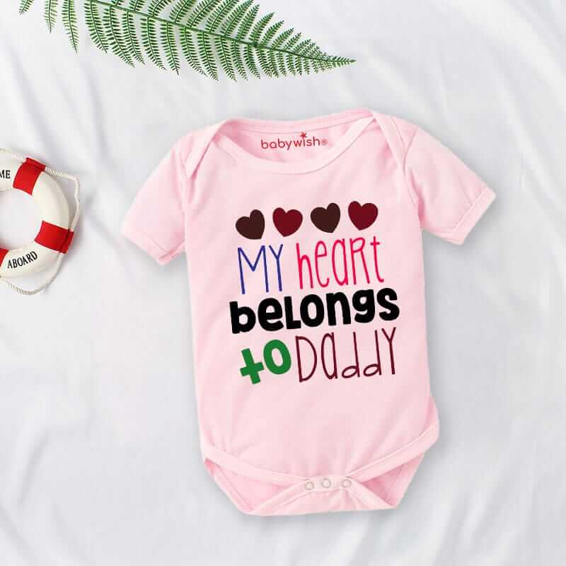 Baby First Valentine’s Day Romper Clothes | Cute Baby Valentine Bodysuits | Newborn Outfit Half Sleeve Unisex Onesies | “My Heart Belongs to Dad” Baby Gift Romper for Girls & Boys