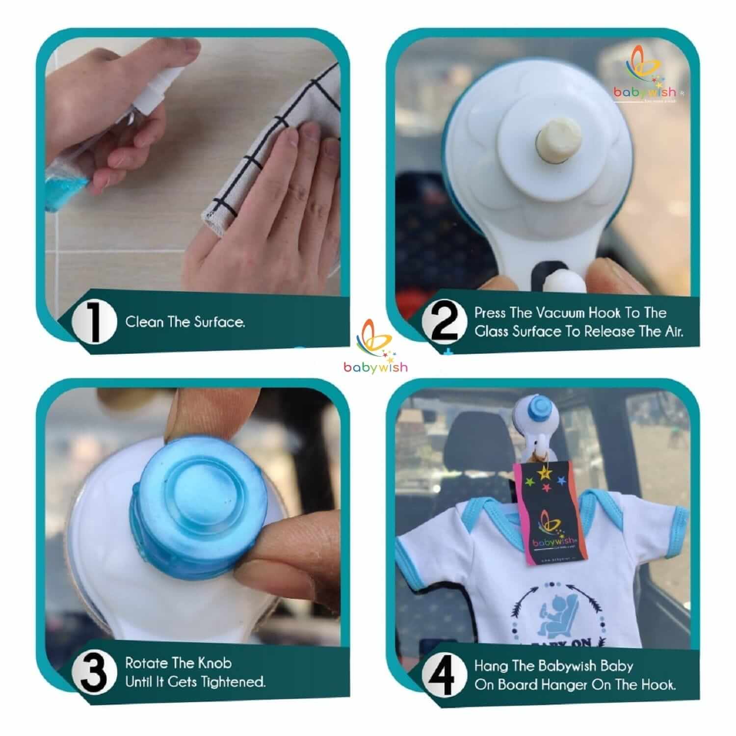 Safety is an inherent part of Babywish products. As a parent, your child’s safety is of utmost importance. This Babywish Baby on Board sign easily sticks through large suction caps on your bumper providing a clear view. No more obstruction of vision by having to stick or hang something in the window. Babywish Baby on Board have simple reusable, durable & washable designs last long to ensure your warning sign will look just as new and cute for years to come. It will help you to save money, save our environment. Can be applied on any smooth surface. Easily removable or transferable thanks to the suction caps and Hanger. These Signs doesn’t leave any marks every time they remove and transferred to other vehicles.