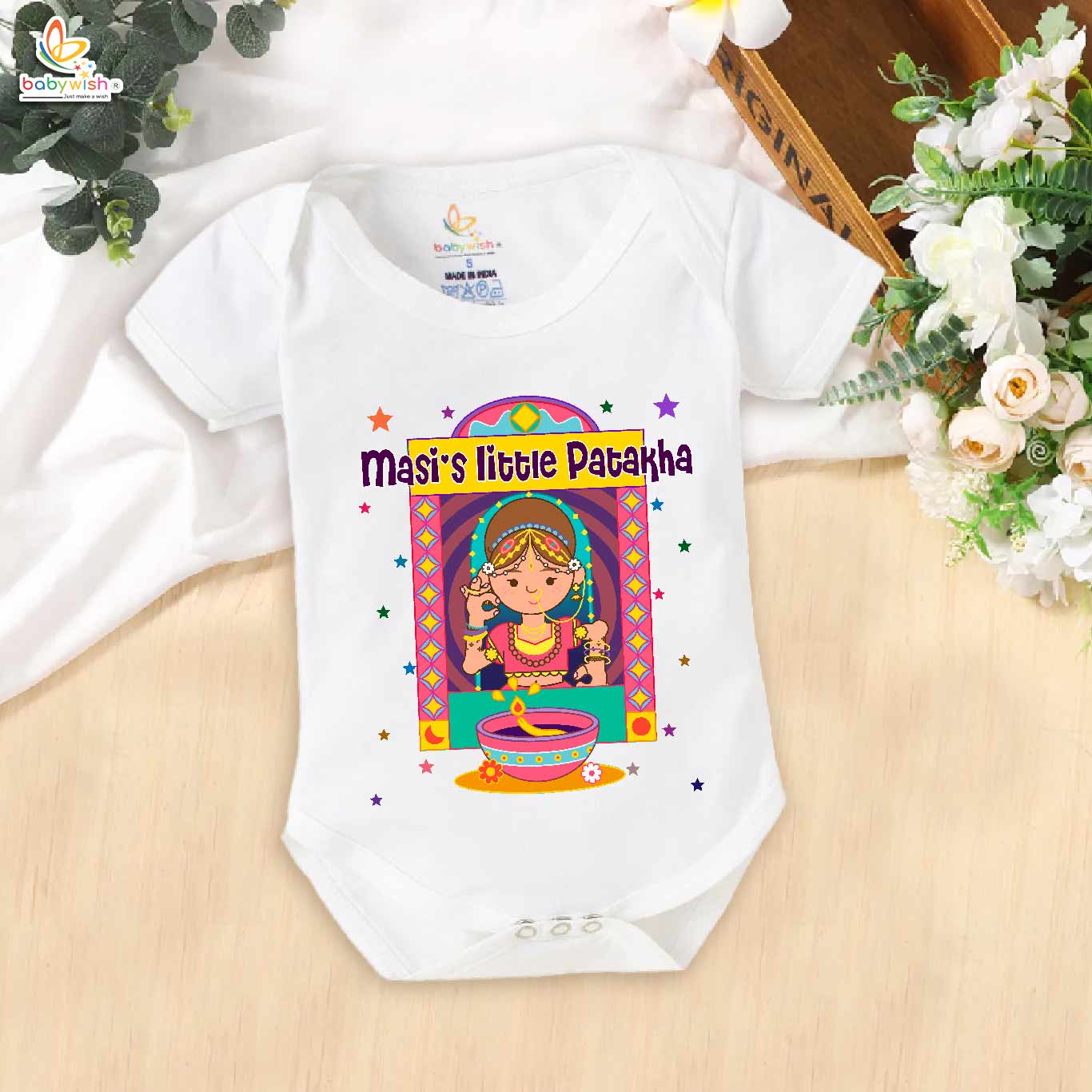Babywish Baby Diwali Romper Bodysuit My First Diwali Masi’s Little Patakha