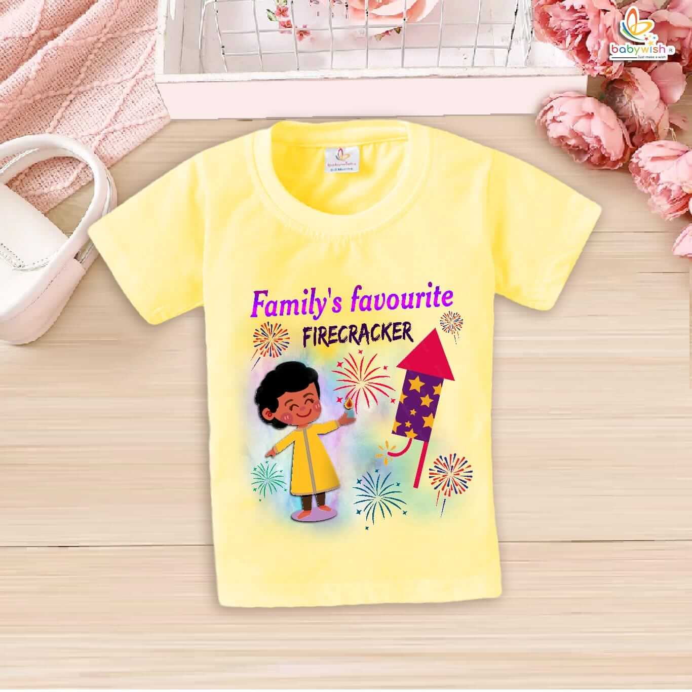Babywish Baby Diwali T-shirt My First Diwali Family Favourite Firecracker