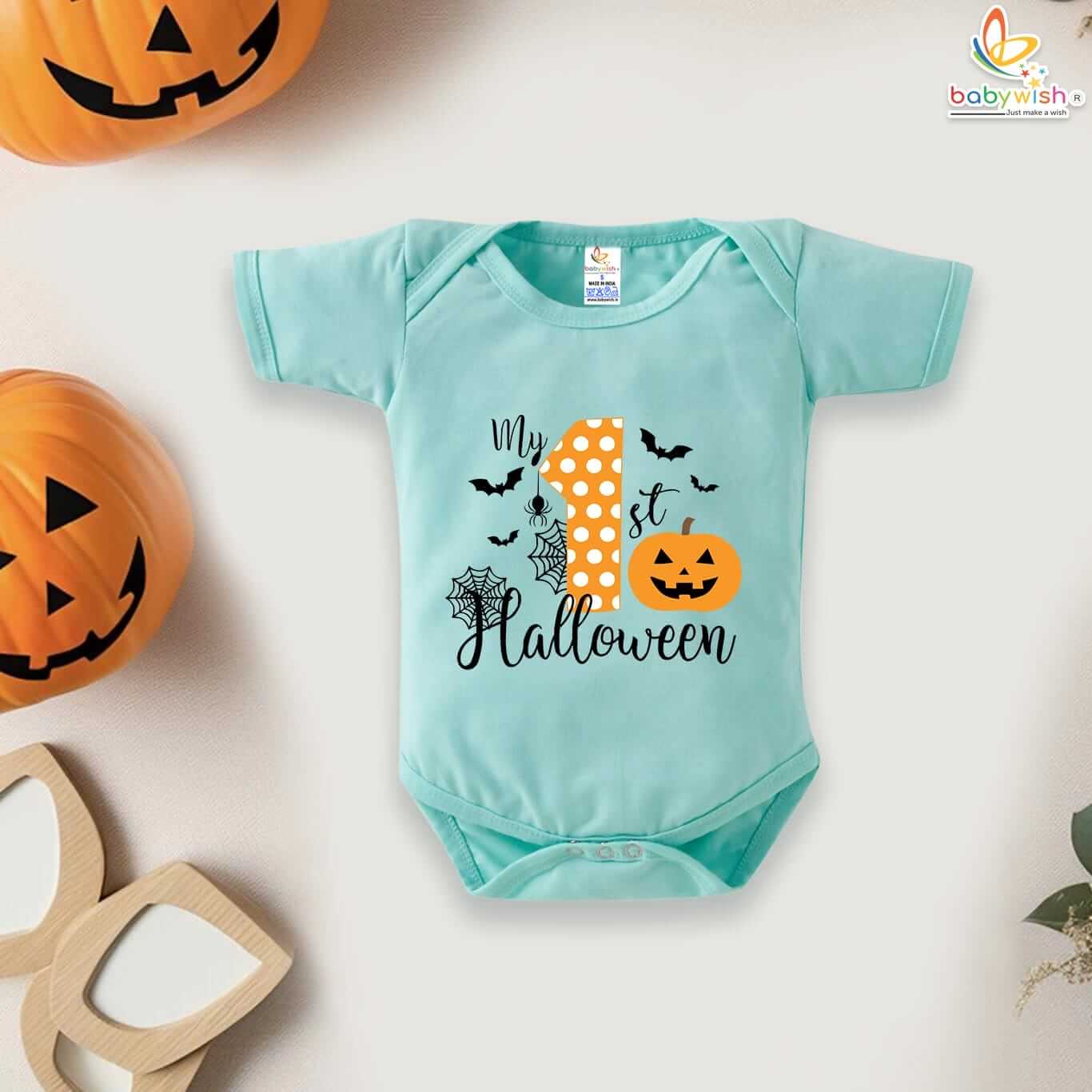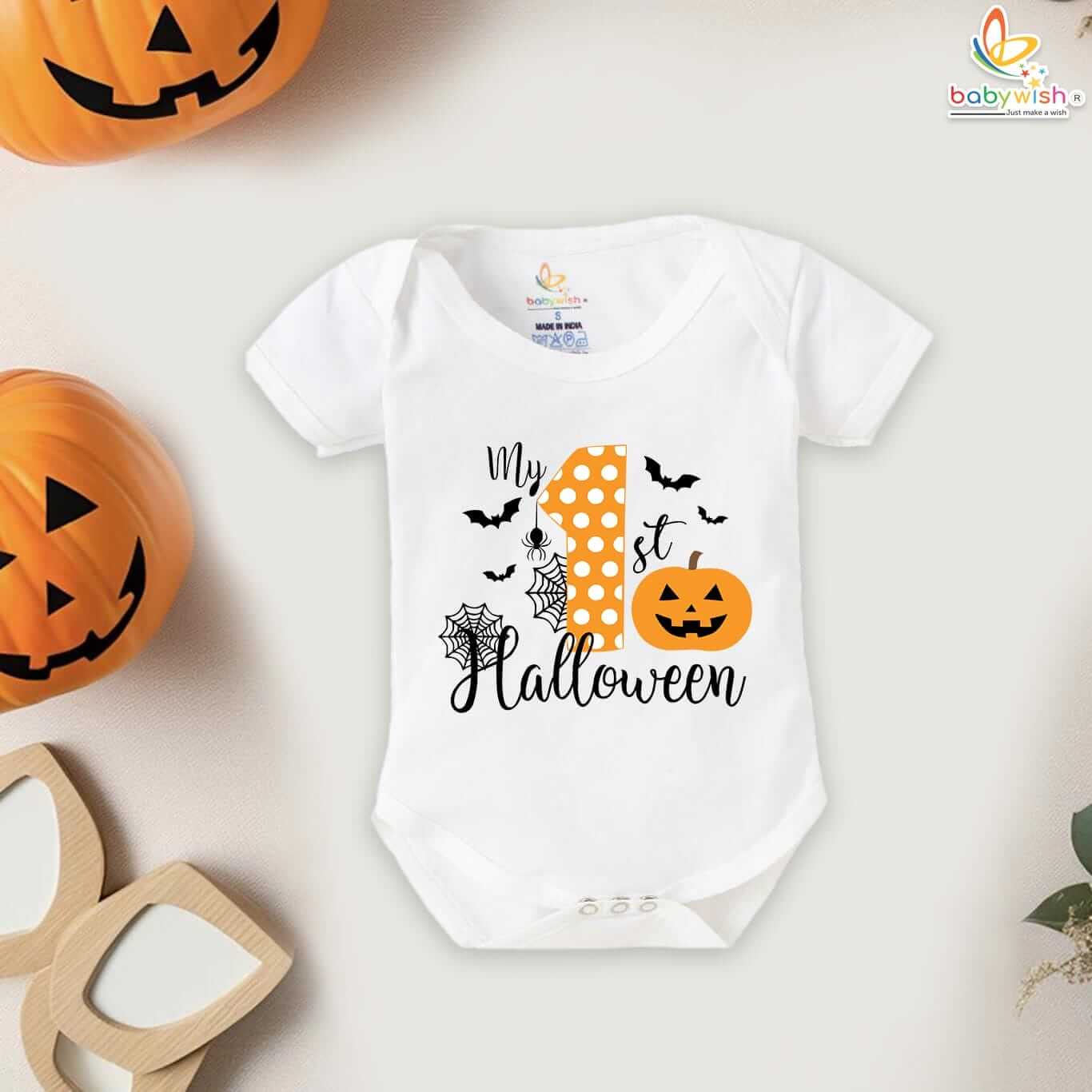 Be the first to review “My First Halloween Baby Romper Bodysuit – Spiderweb and Pumpkin Print Halloween Outfit for Newborn Infant Baby Girl or Boy – Babywish”