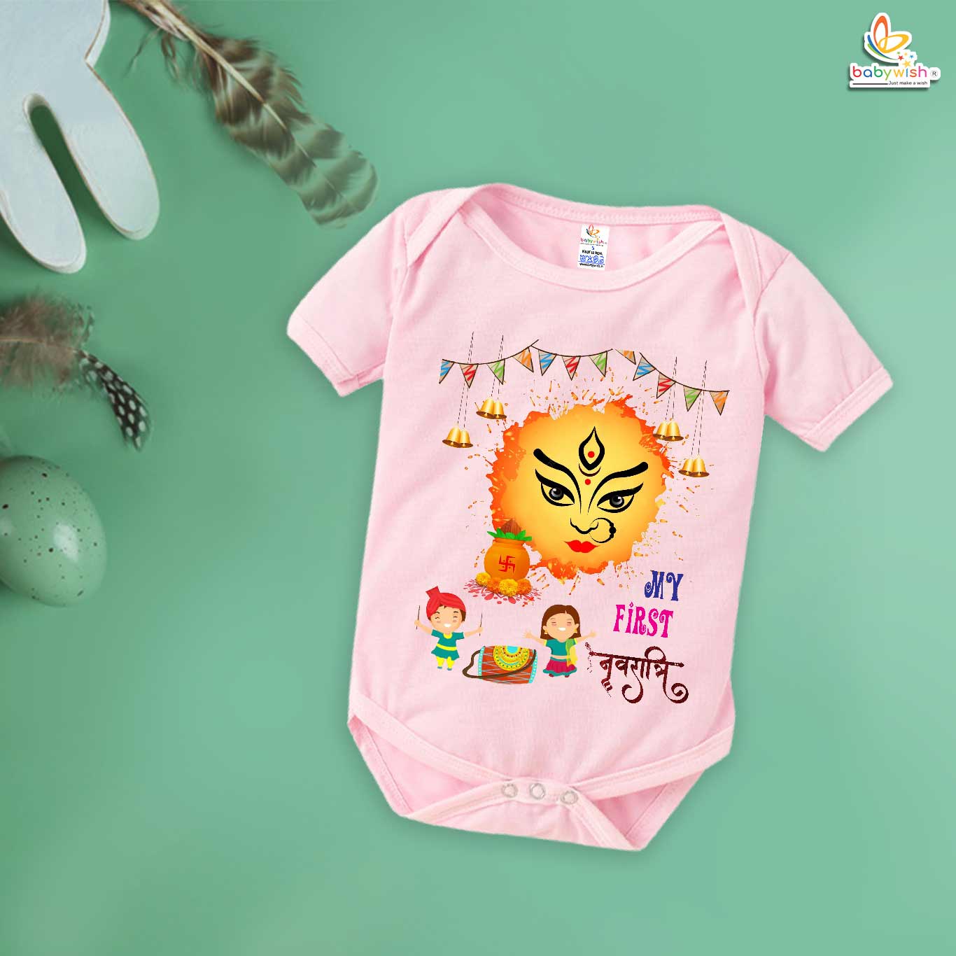 Baby Navratri Romper Bodysuit for Boys and Girls, My First Dussehra Outfit, First Navratri Celebrations Onesie, Soft Cotton Romper Babywish
