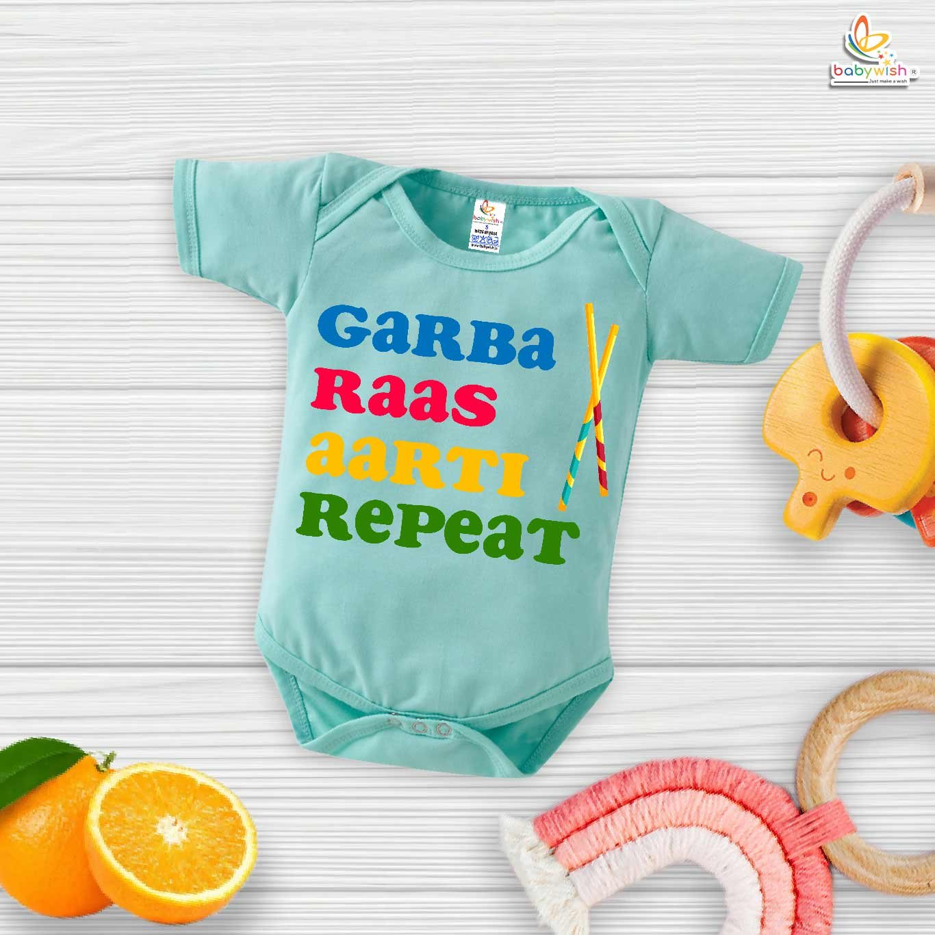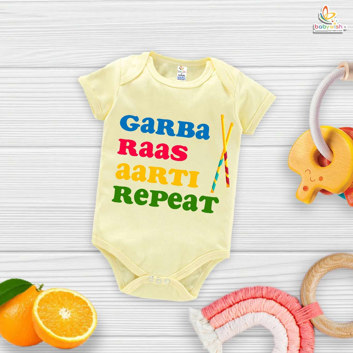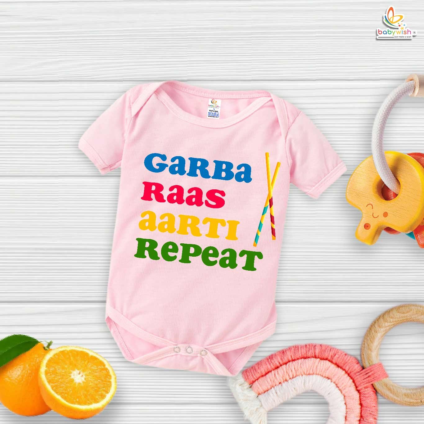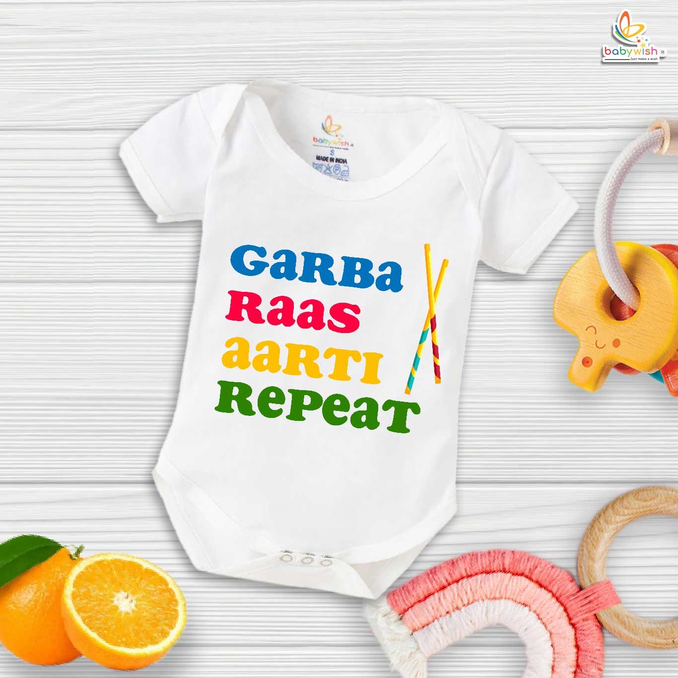 Baby Navratri Romper Bodysuit for Girls, My First Dussehra, Garba Raas Aarti Repeat Print, Festive Navratri Outfit – Babywish