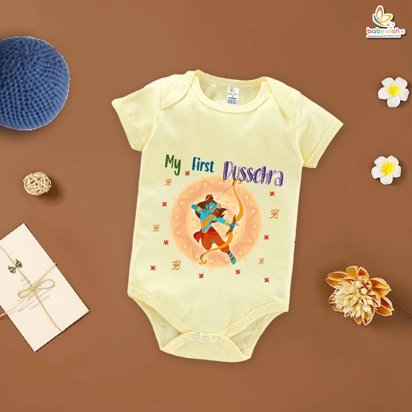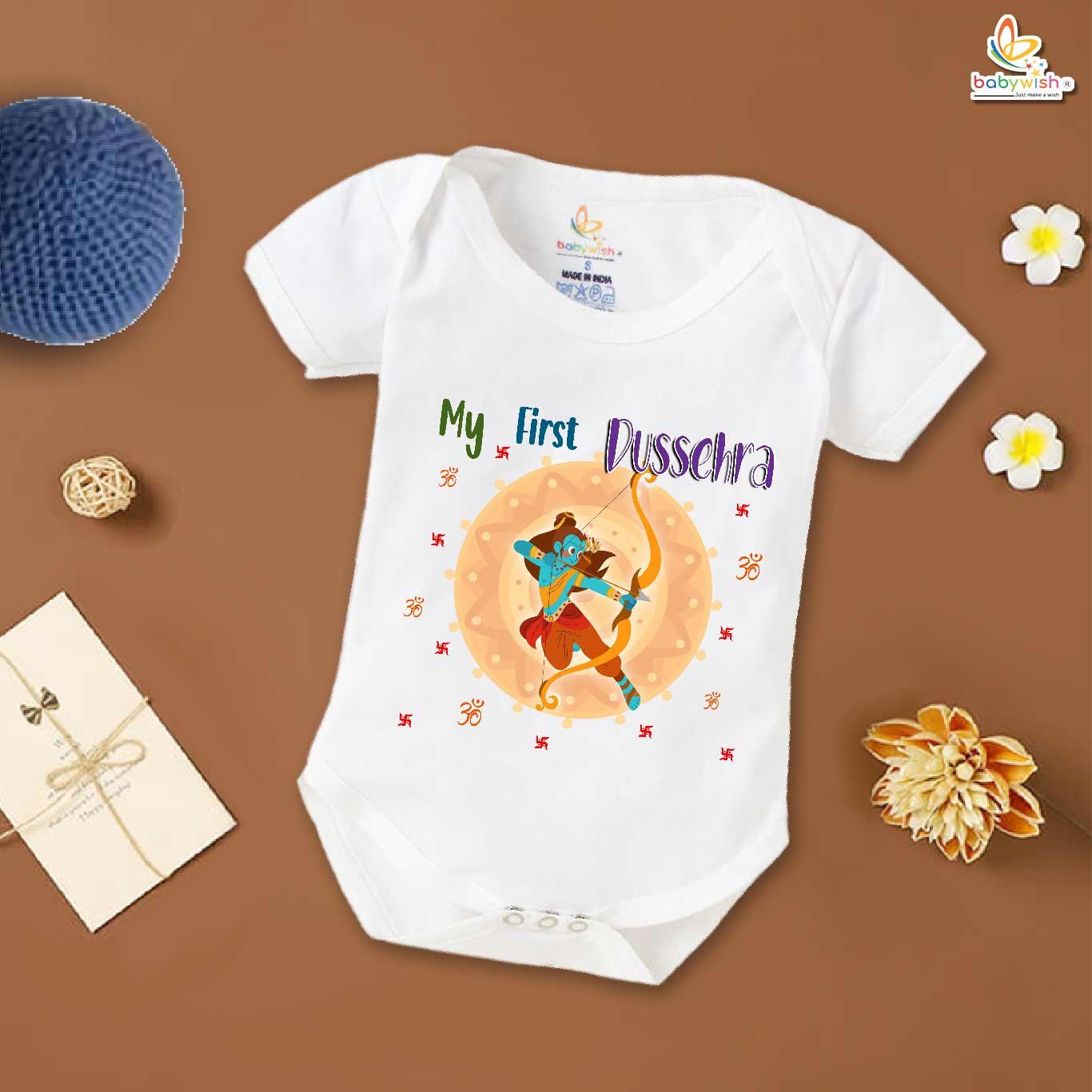 Baby Navratri Romper Bodysuit for Boys and Girls – My First Dussehra Outfit – Shubh Dussehra Print – Babywish
