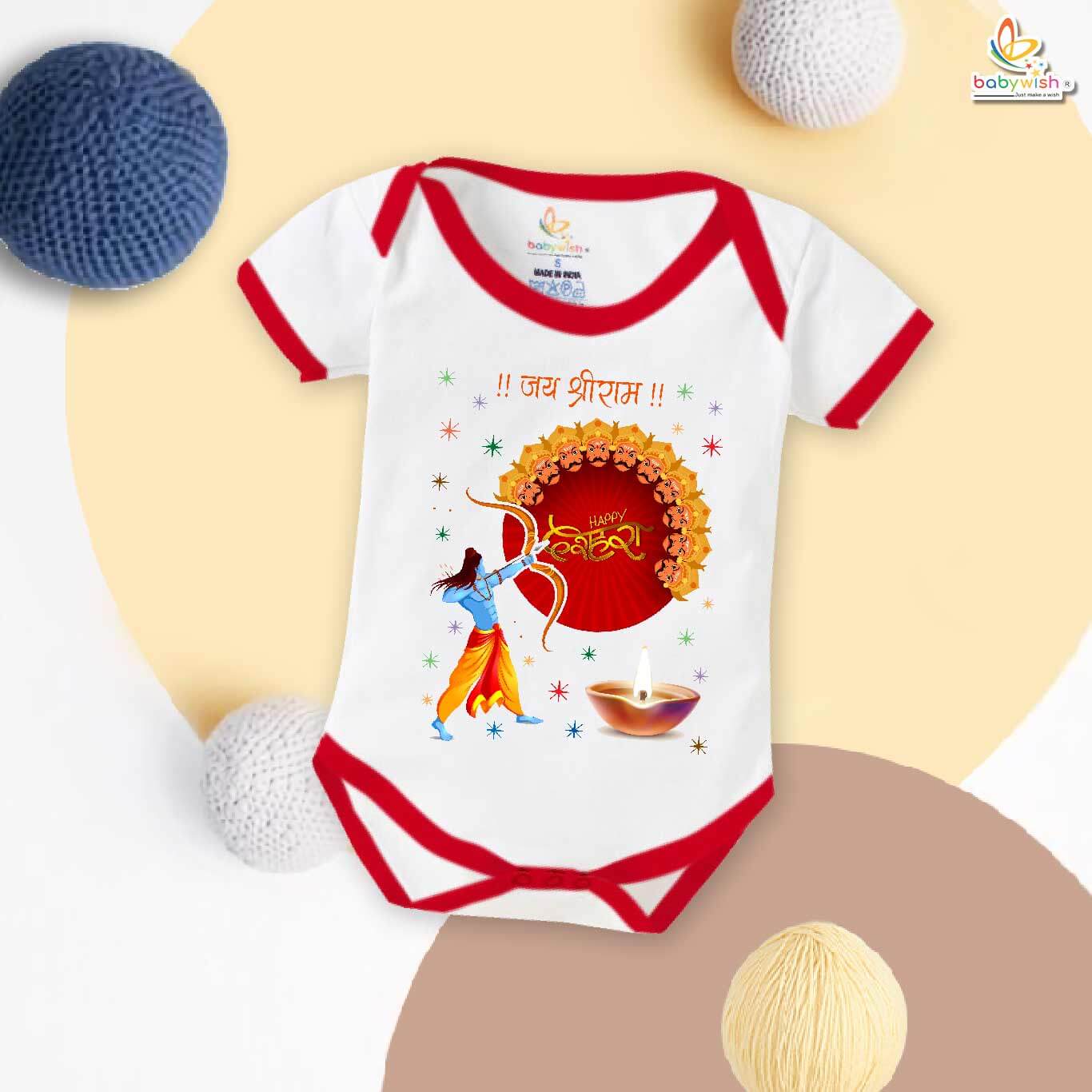 Baby Navratri Romper Bodysuit for Boys and Girls, My First Dussehra Outfit – Celebrate Victory of God Over Evil – Babywish
