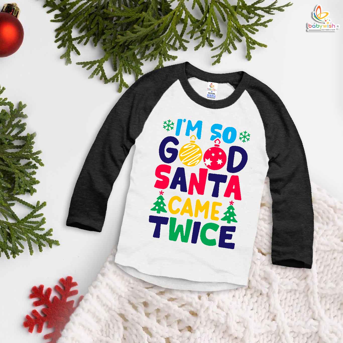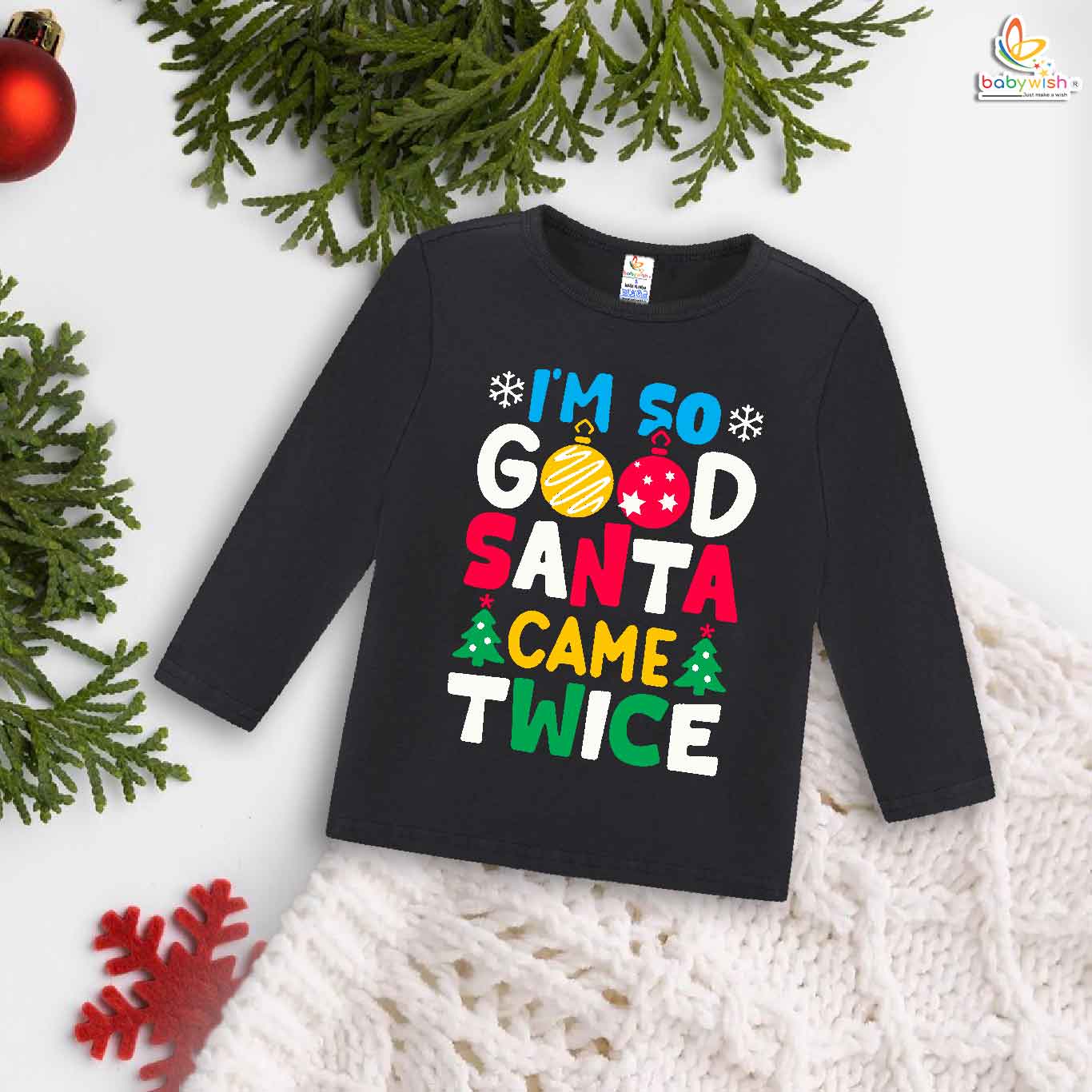 My First Christmas T-Shirt | I Am So Good Santa Came Twice Print Full Sleeve Baby Tee | Funny Holiday Outfit for Boys & Girls – Babywish