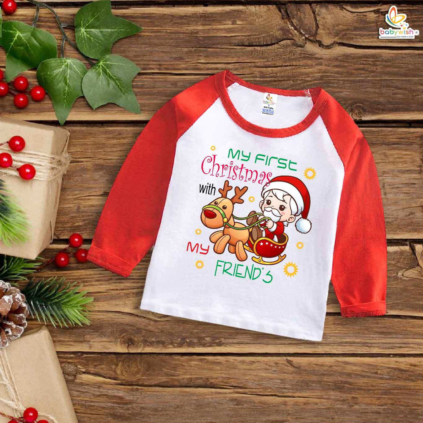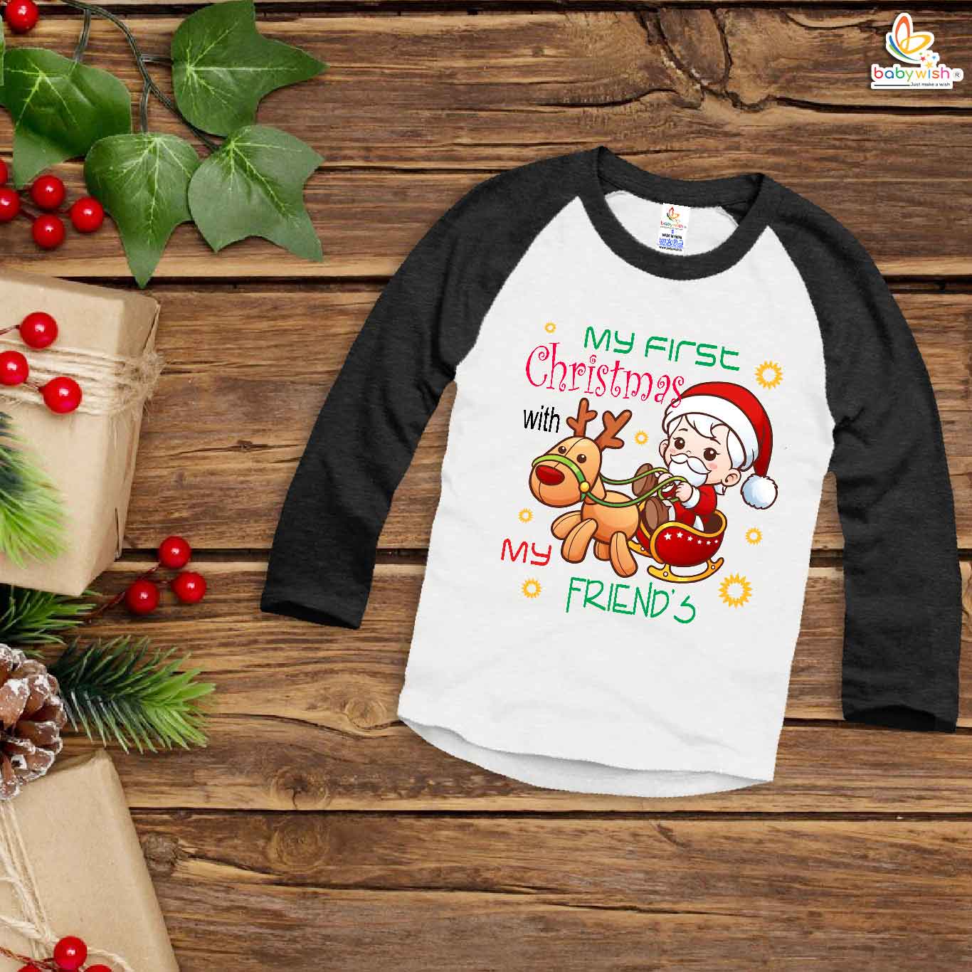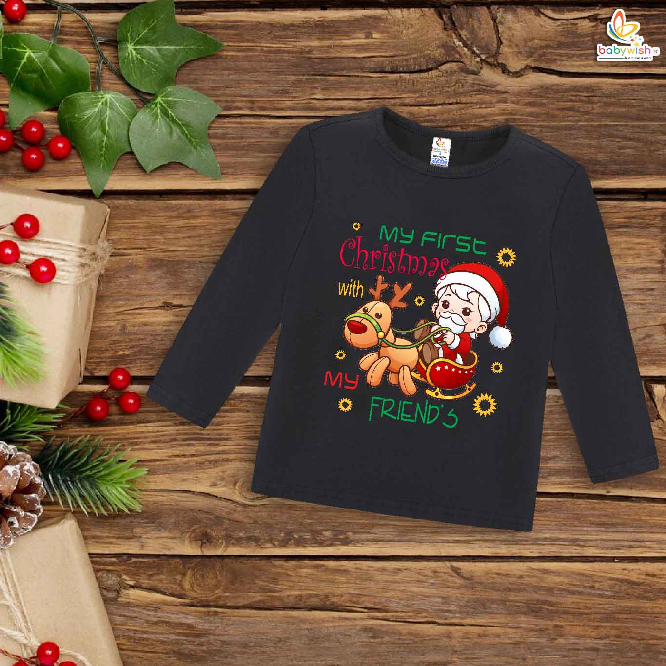 My First Christmas T-Shirt | Full Sleeve Baby Tee – Celebrating First Christmas with Friends | Festive Outfit for Boys & Girls – Babywish