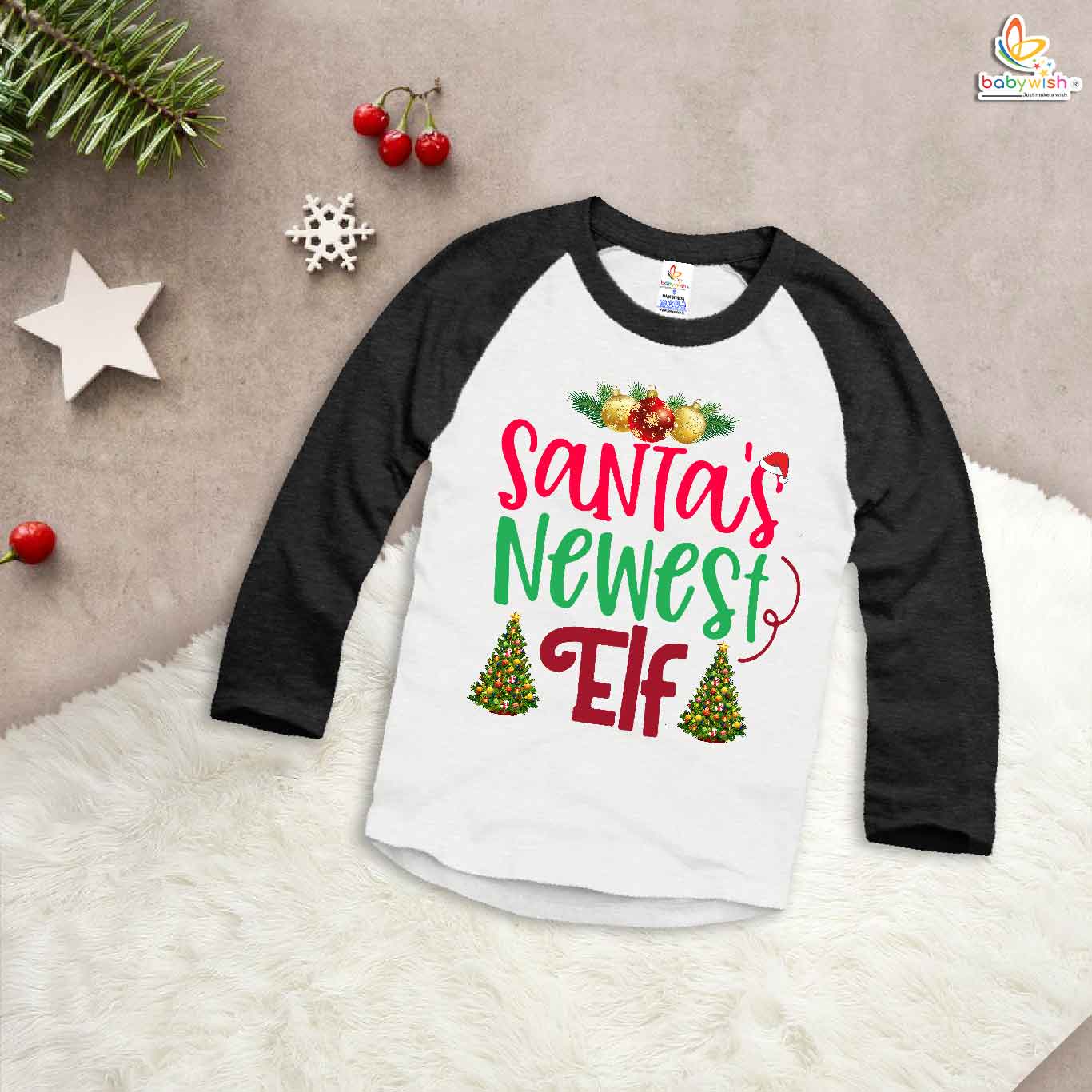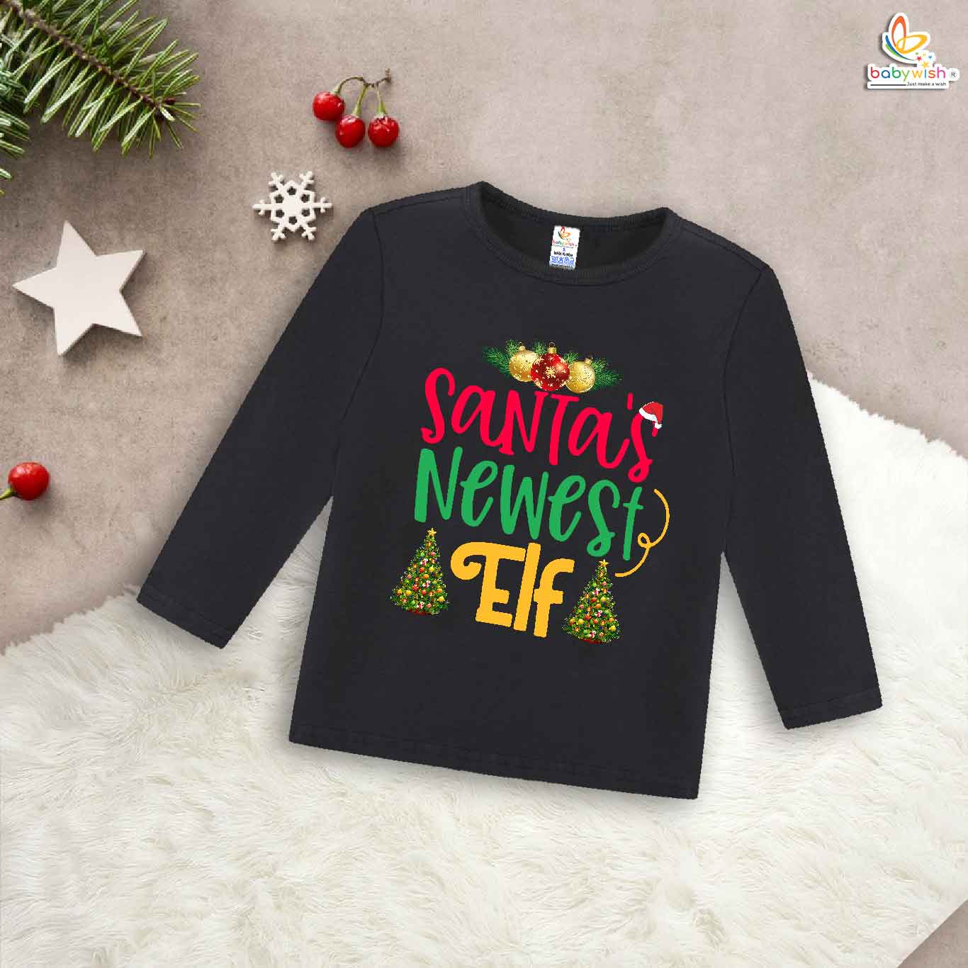 My First Christmas T-Shirt | Santa’s Newest Elf Print Full Sleeve Baby Tee for Boys & Girls | Cute Holiday Outfit – Babywish