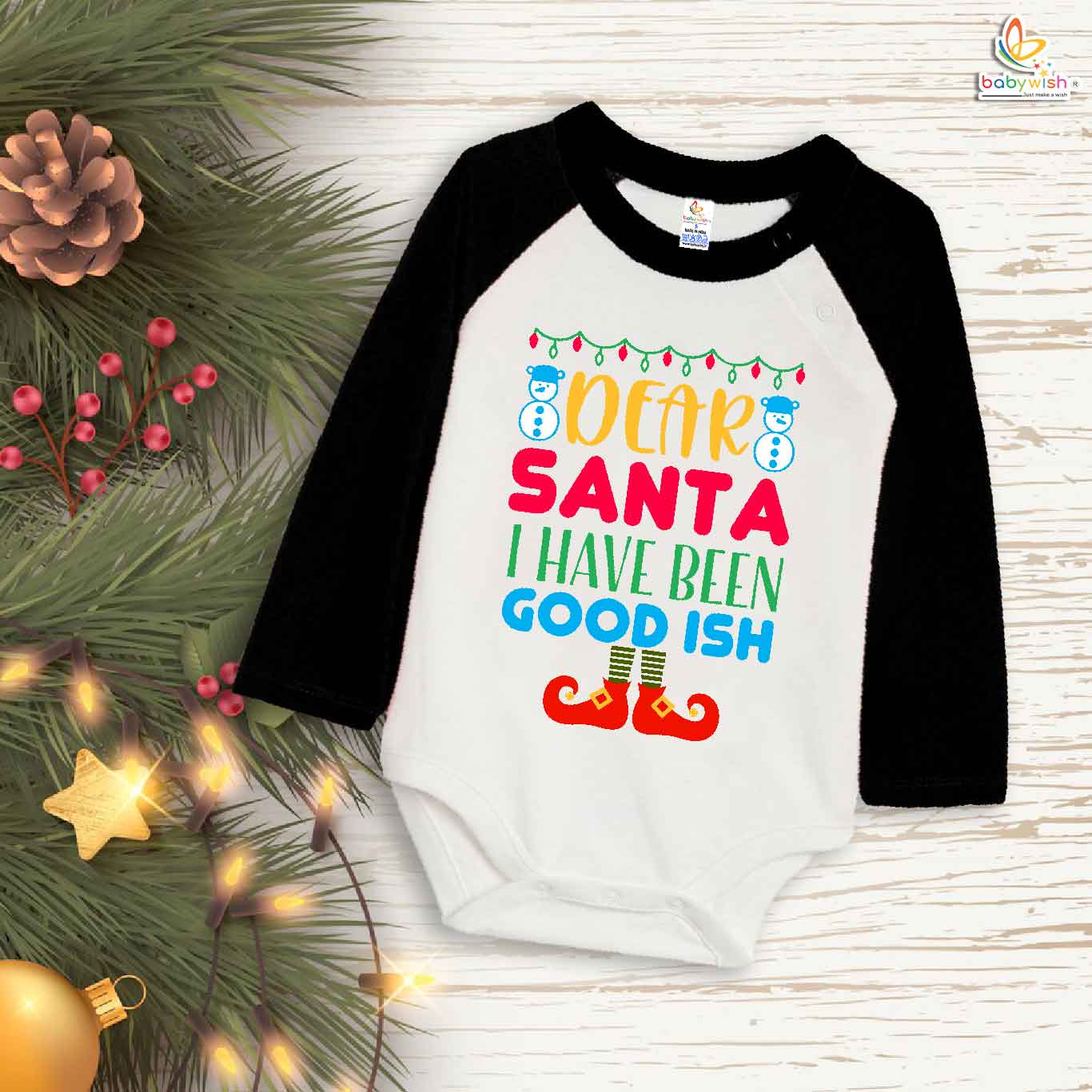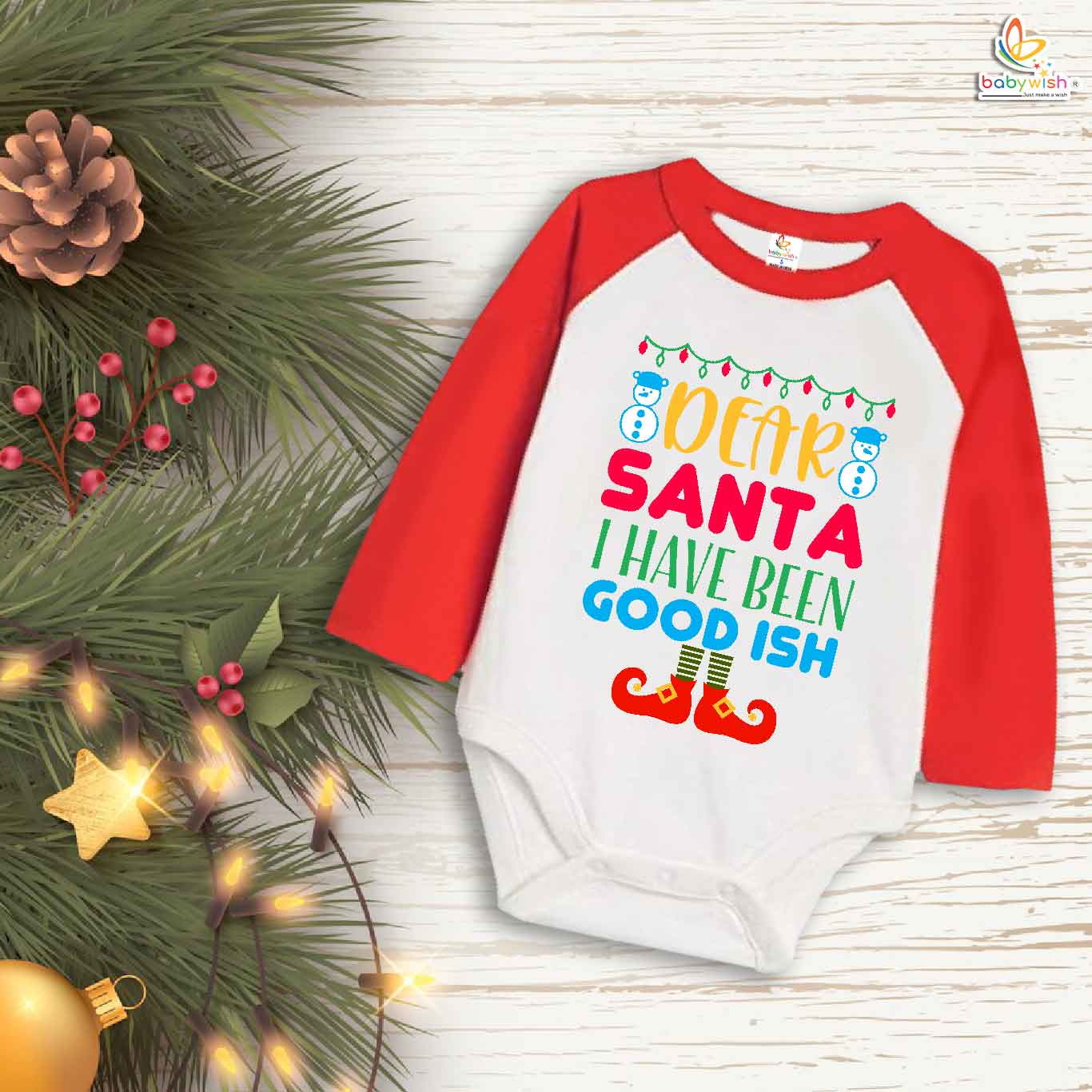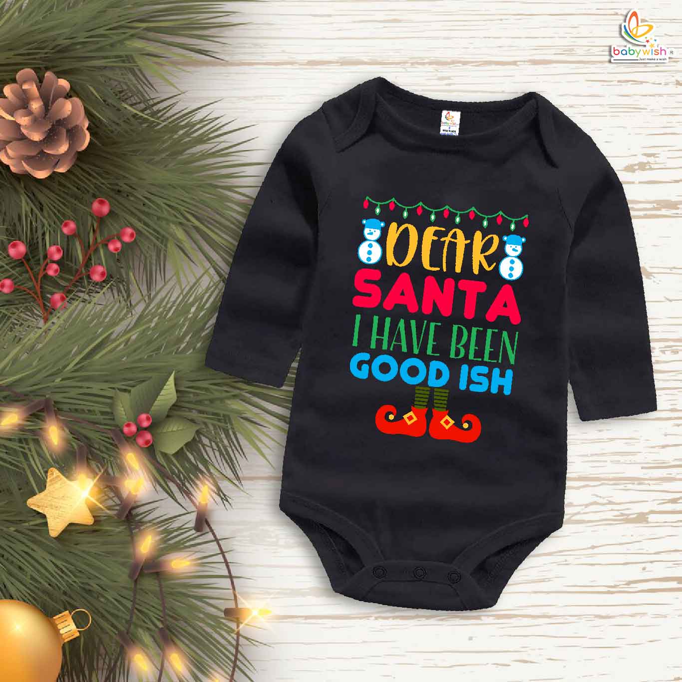 My First Christmas Romper | Dear Santa I Have Been Good-ish Print Bodysuit for Baby Boys & Girls | Funny Holiday Outfit – Babywish