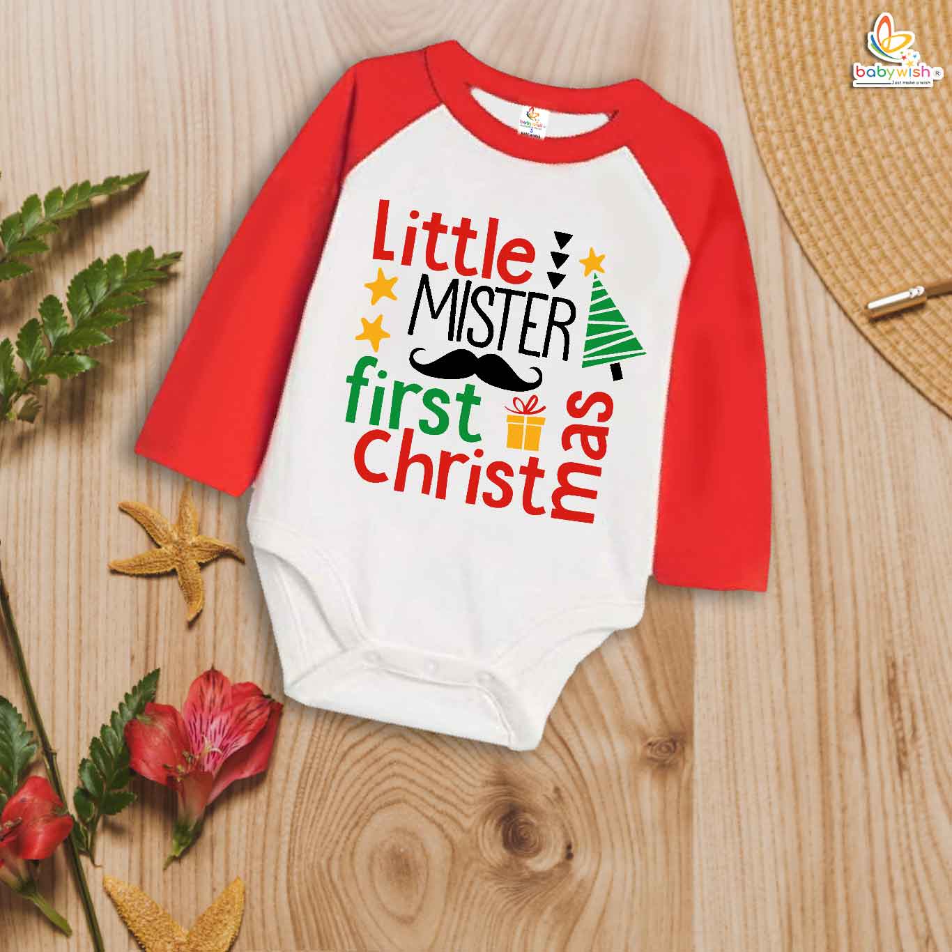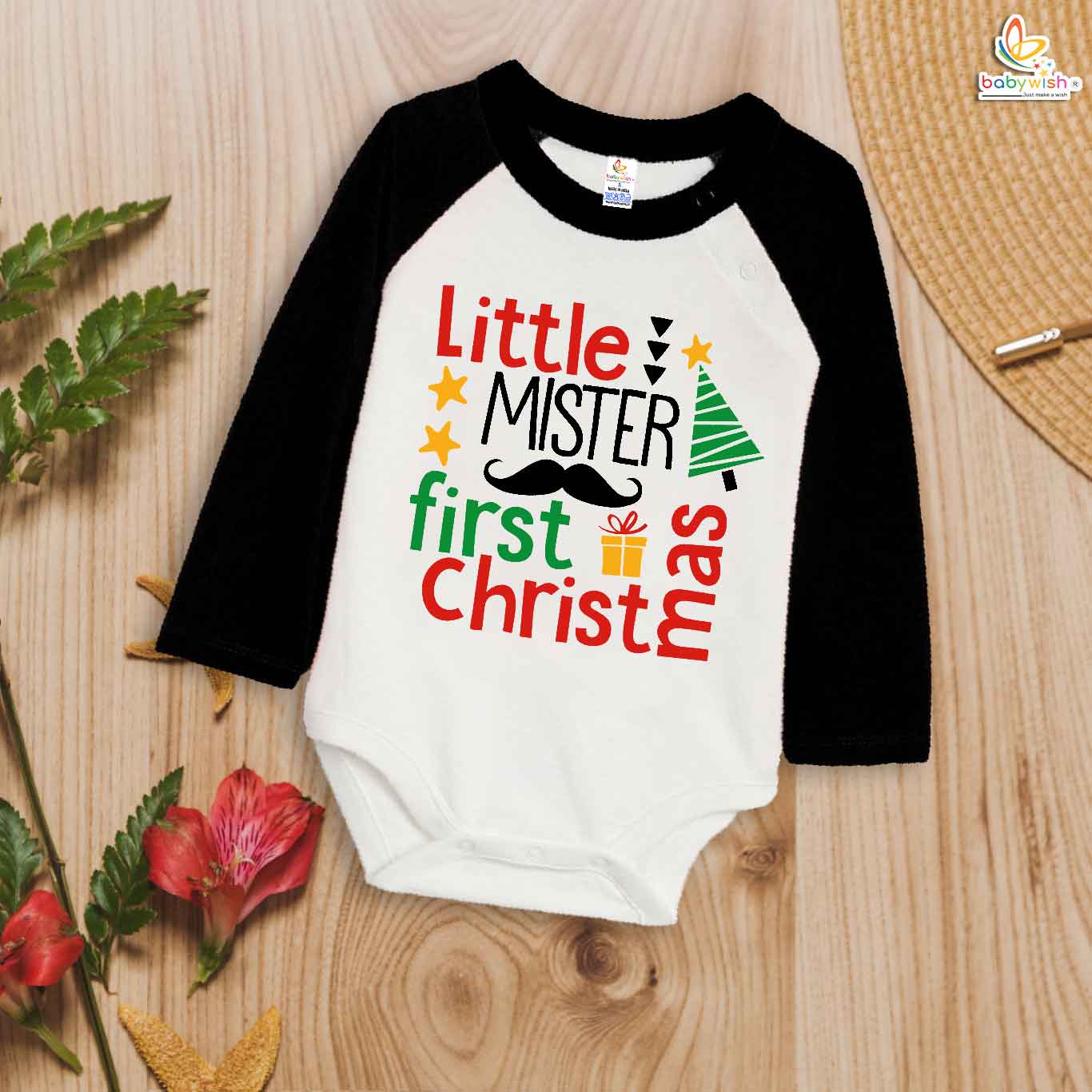 Babywish Christmas Romper Clothes My First Merry Bodysuit Romper Little mister first Christmas