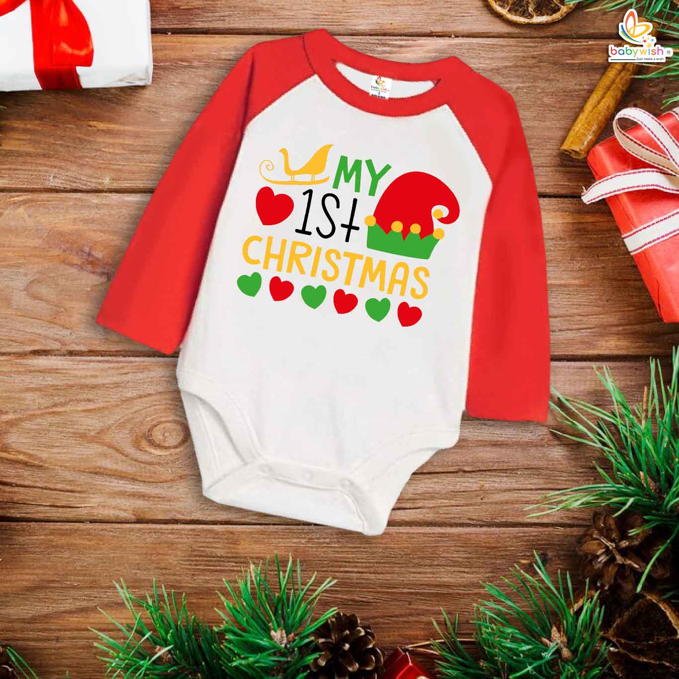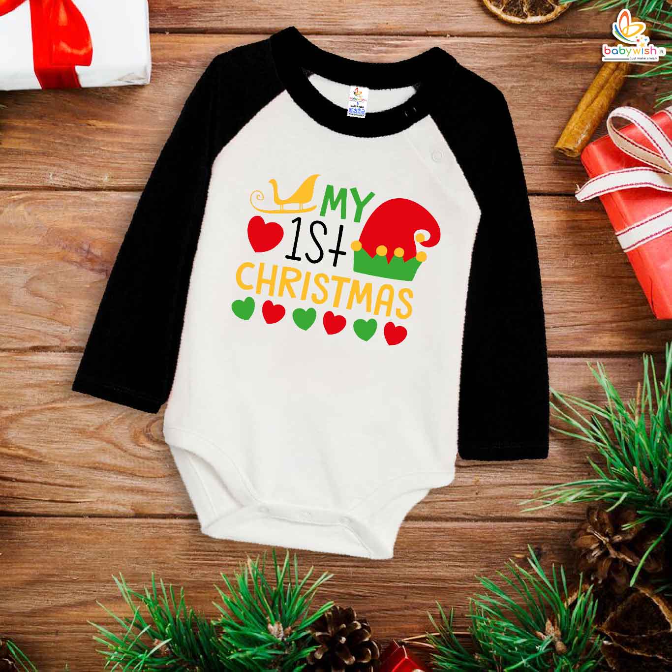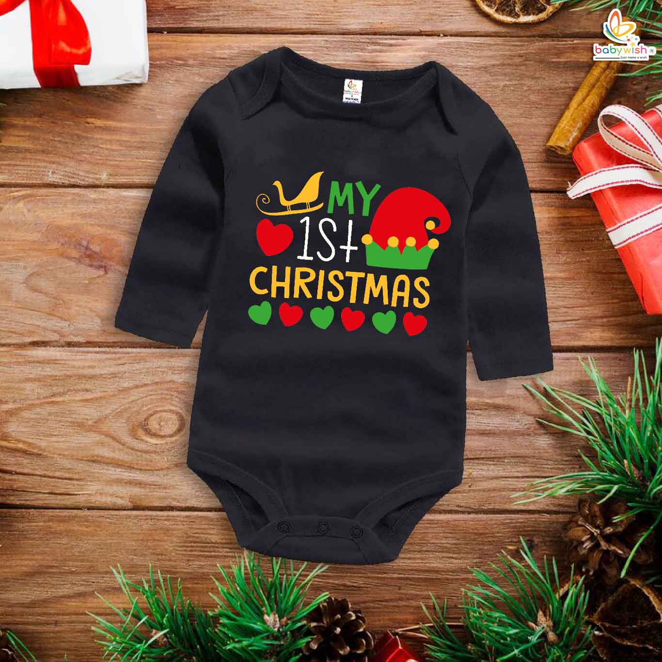 Babywish Christmas Romper Clothes My First Merry Bodysuit Romper My first Christmas Hat Print