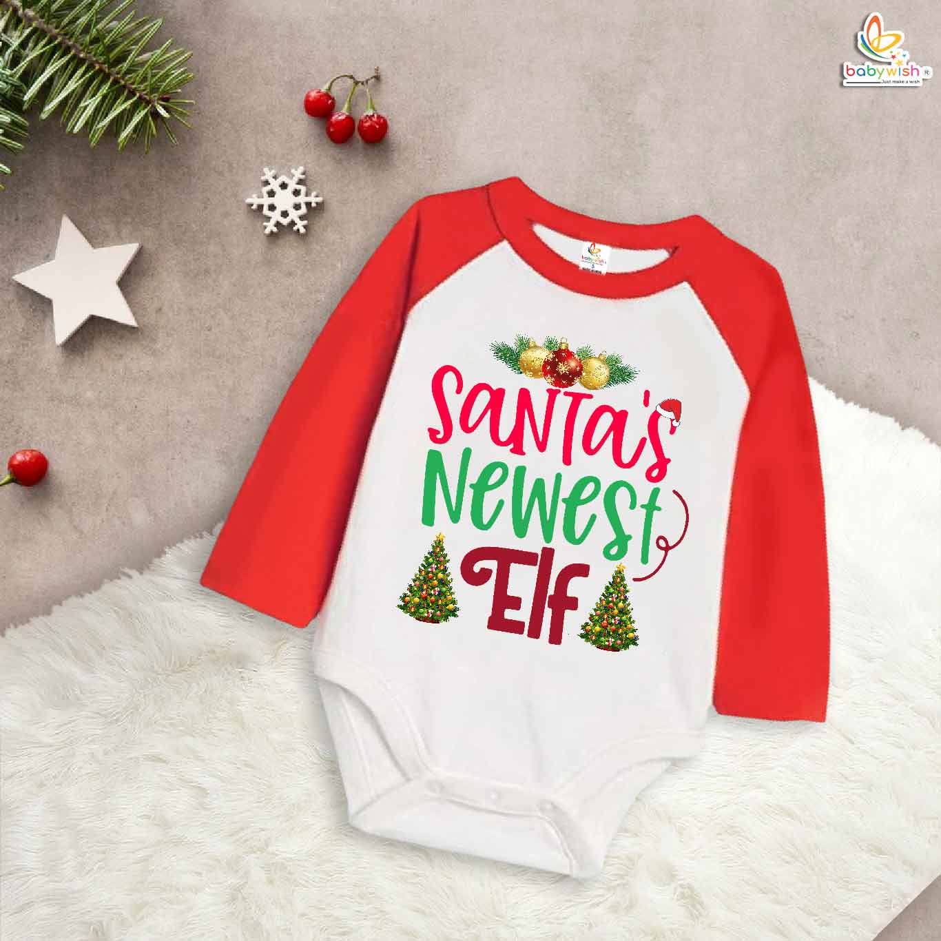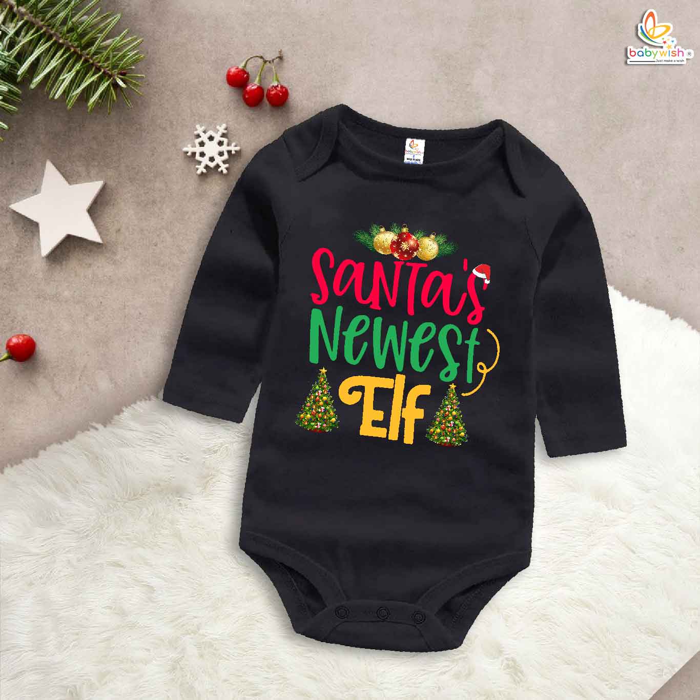 My First Christmas Romper | Santa’s Newest Elf Print Bodysuit for Baby Boys & Girls | Cute Holiday Baby Outfit – Babywish