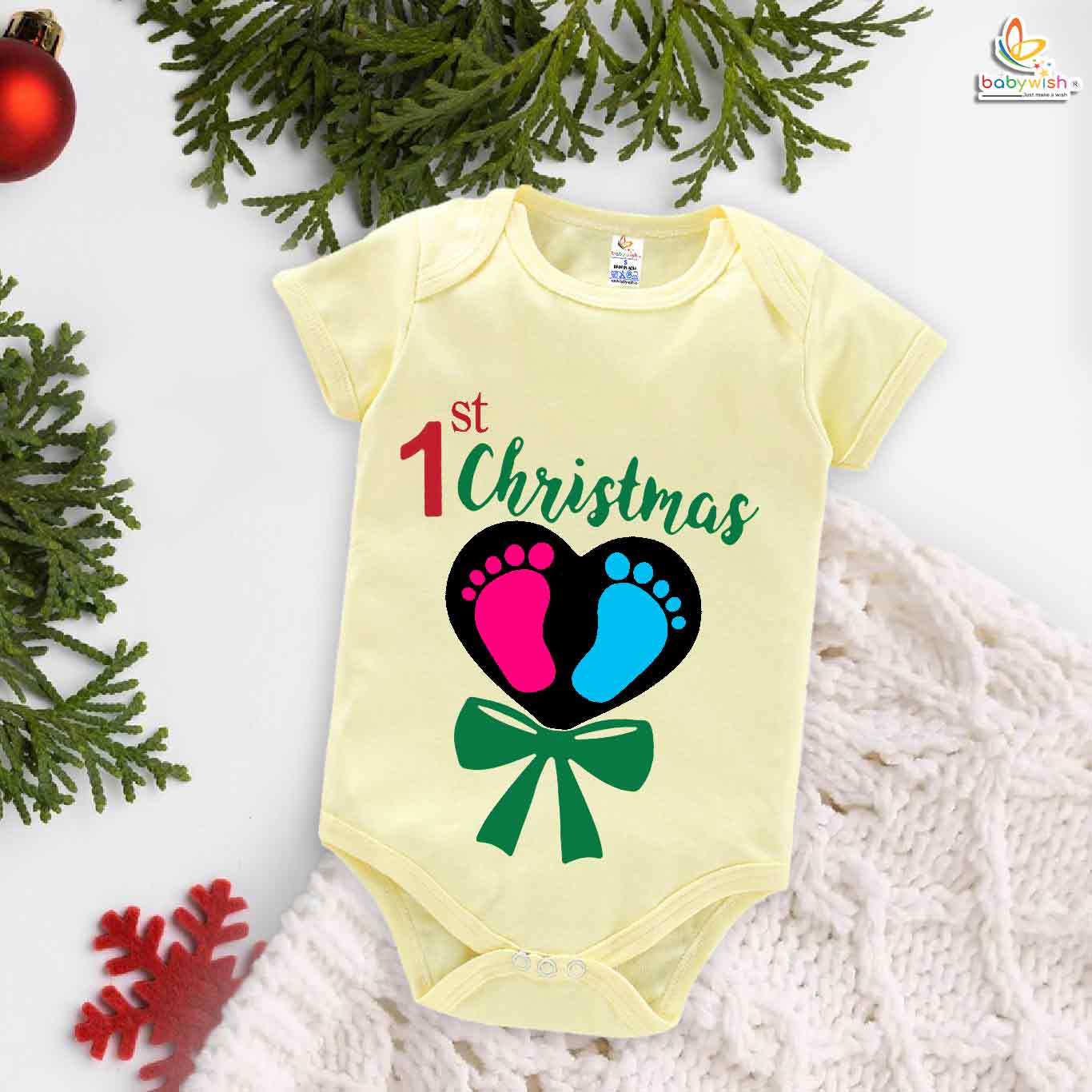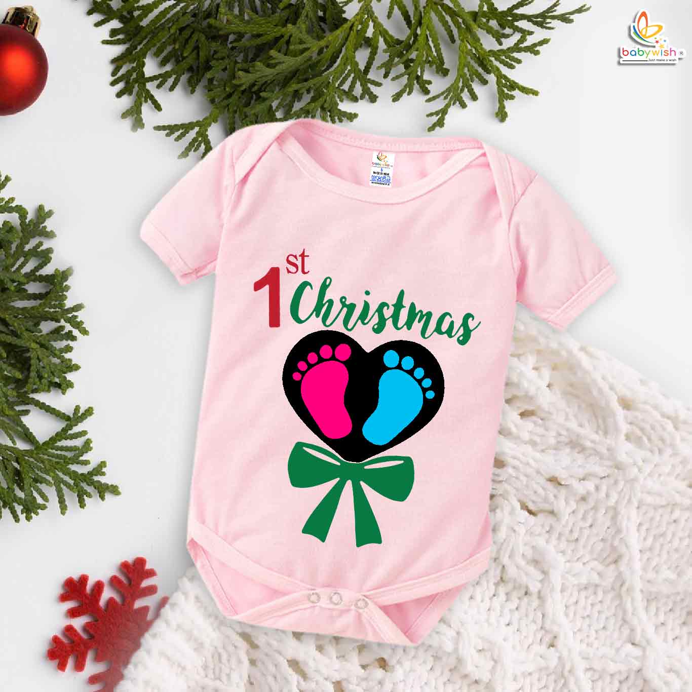 Babywish Christmas Romper Clothes for Babies, My First Merry Christmas Bodysuits, 1st Christmas Footprints Newborn Outfit, Cute Holiday Onesies for Boys & Girls