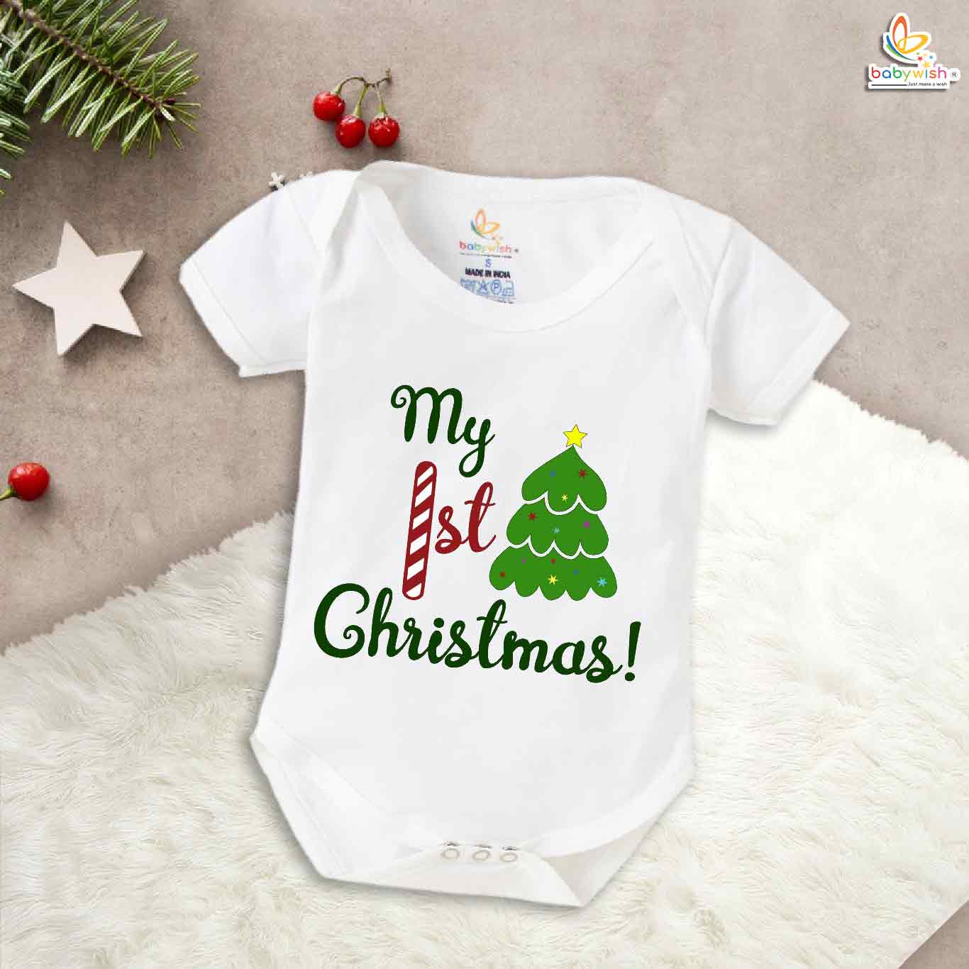 Babywish Christmas Romper Clothes for Babies, My First Merry Christmas Bodysuits, My 1st Christmas Theme Tree Outfit, Festive Holiday Onesies for Boys & Girls