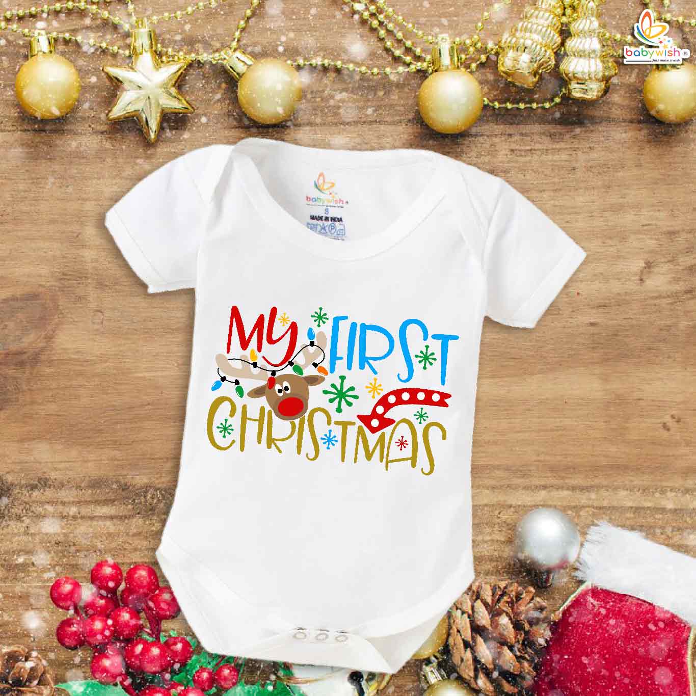 Babywish Christmas Romper Clothes for Babies, My First Merry Christmas Bodysuits, My First Christmas Floral Theme Newborn Outfit, Cute Holiday Onesies for Boys & Girls