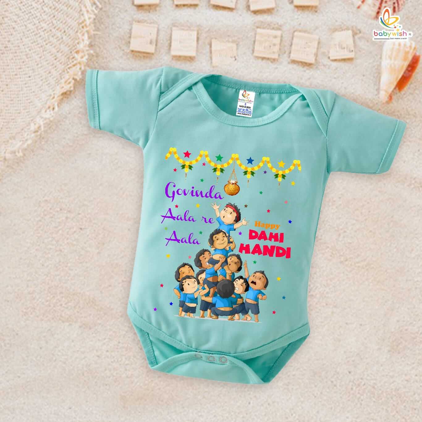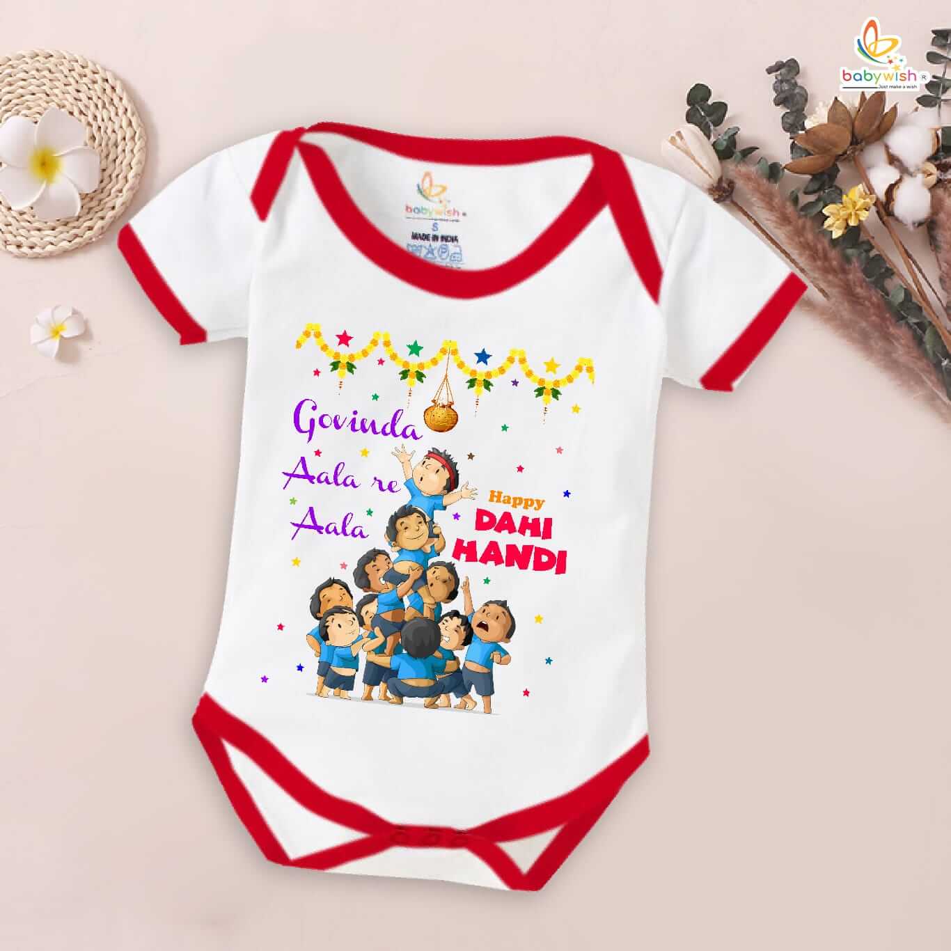 Dahi Handi Romper for Kids, Brother Sister Matching Dress, Cute Half Sleeve Onesie for Boys and Girls, Festive Dahi Handi Outfit Babywish