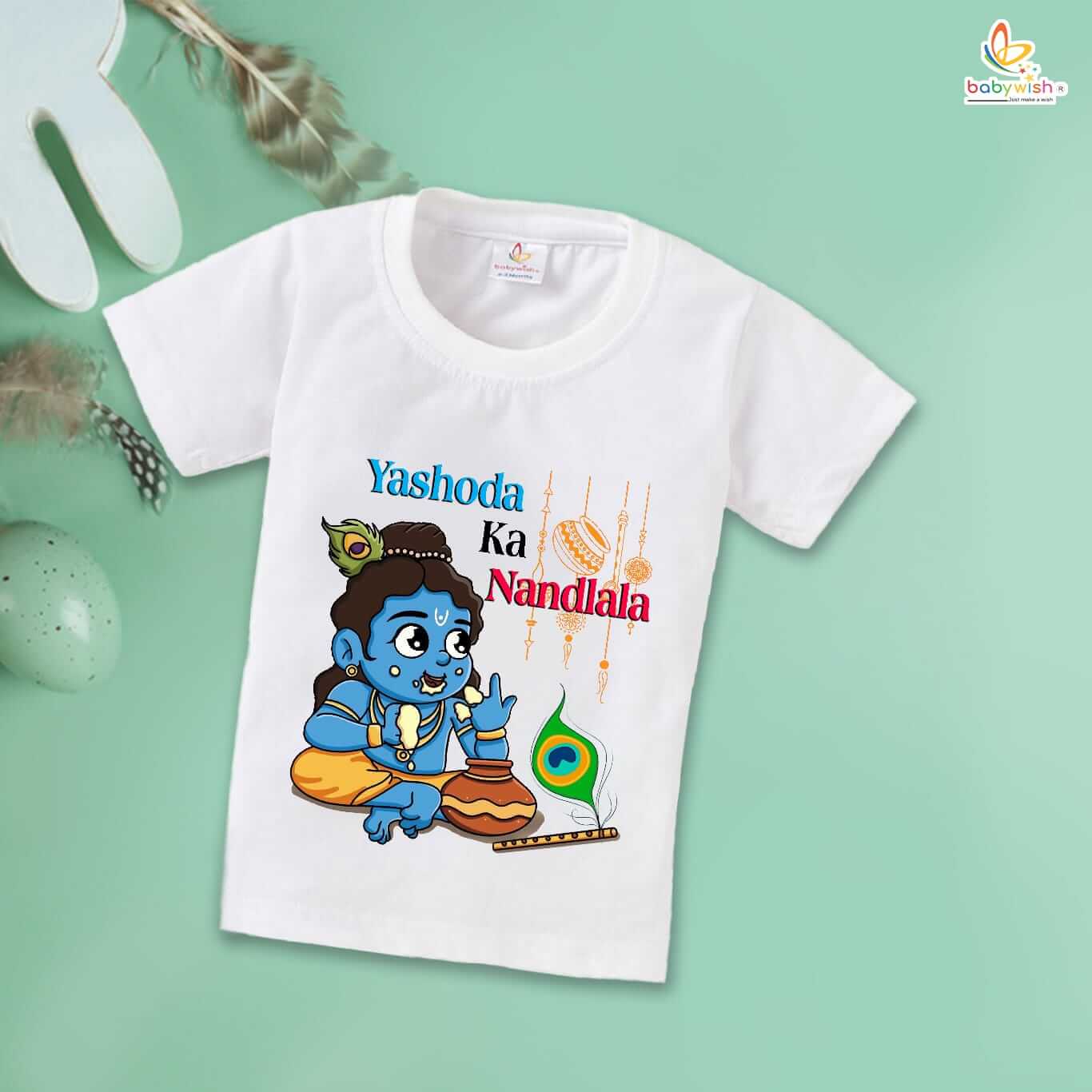 Cute Dahi Handi T-Shirt for Boys and Girls, Krishna Janmashtami Outfit, Soft Cotton Half Sleeve Topwear, Happy Krishna Janmashtami Celebration Tee Babywish