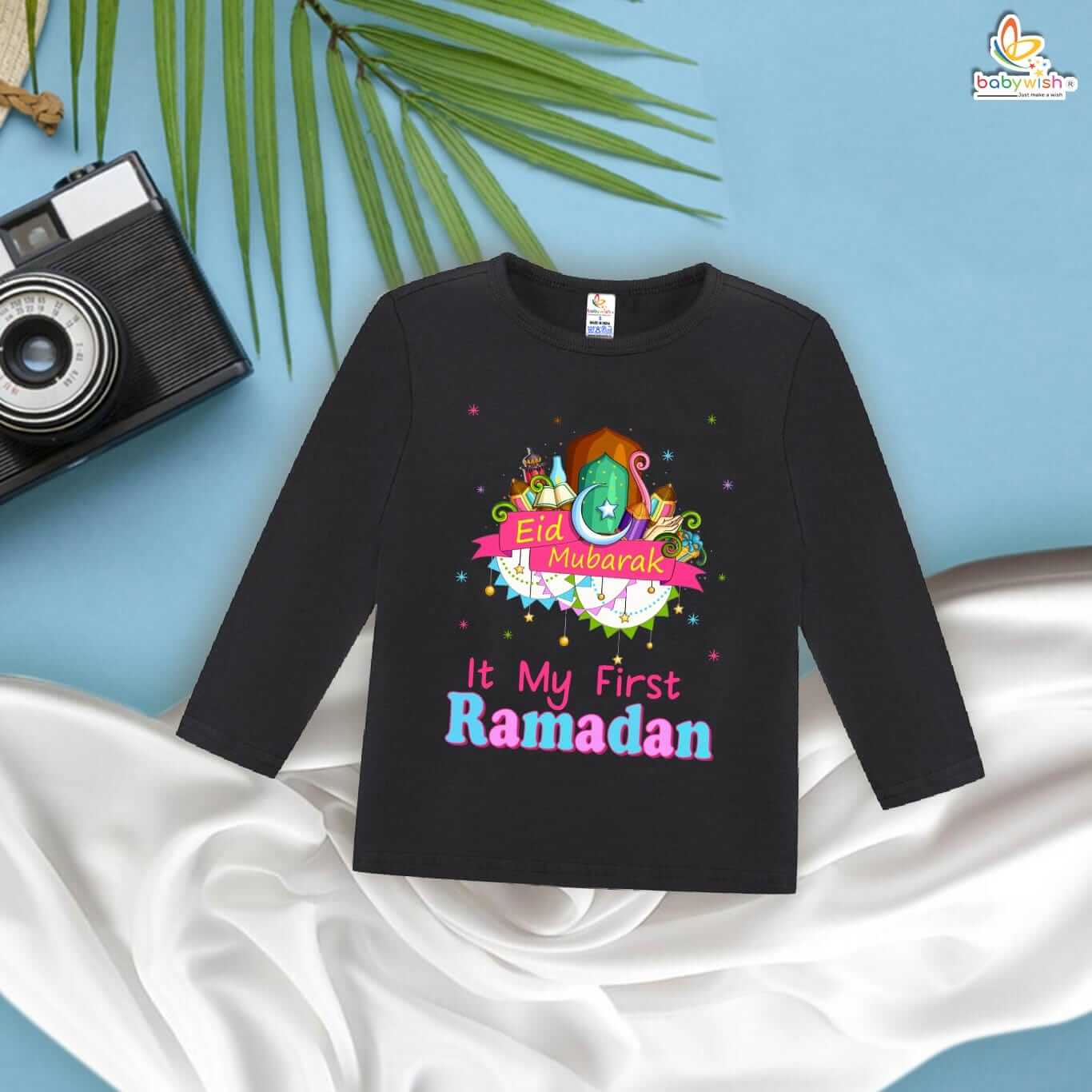 My First Ramadan Full Sleeve T-Shirt – “First Ramadan Mubarak” Print | Baby Boys & Girls Islamic Festival Shirt | Adorable Baby Ramadan & Eid Outfit 2025 by Babywish