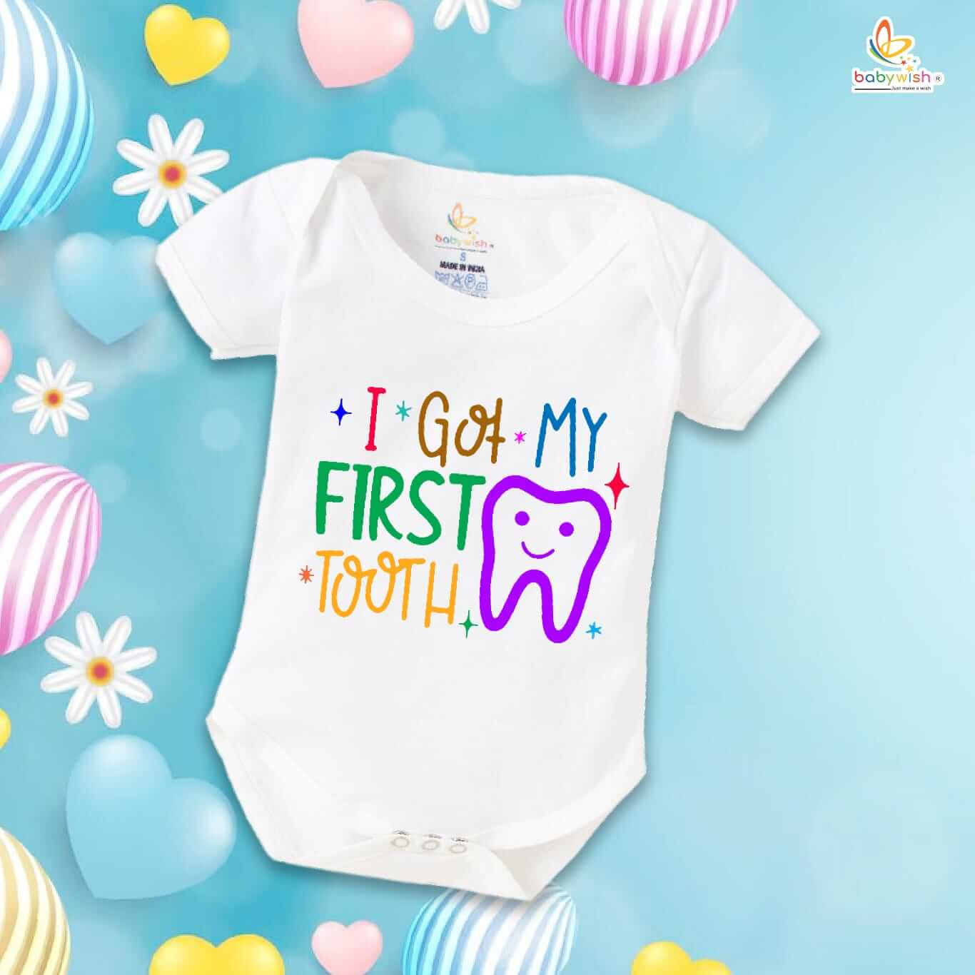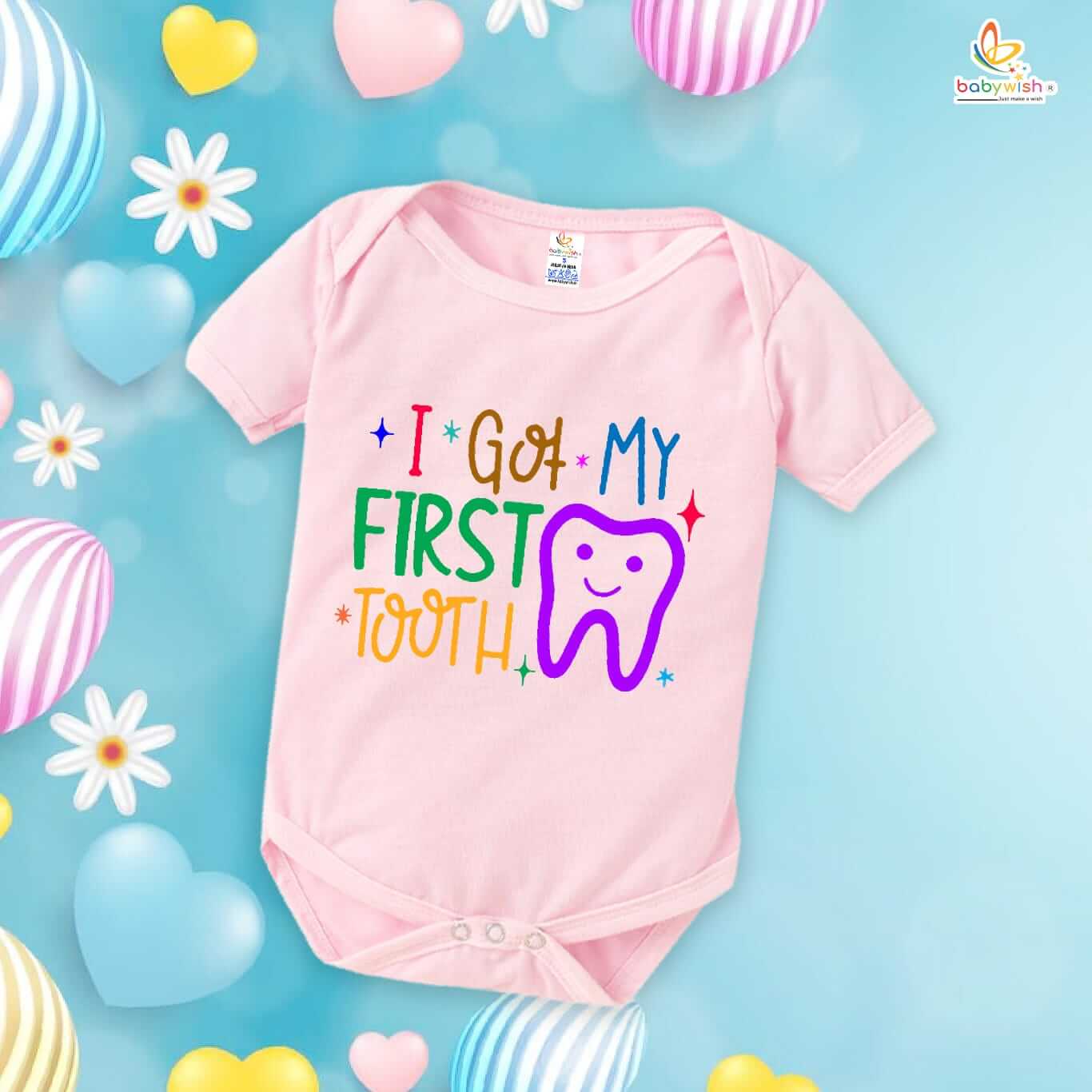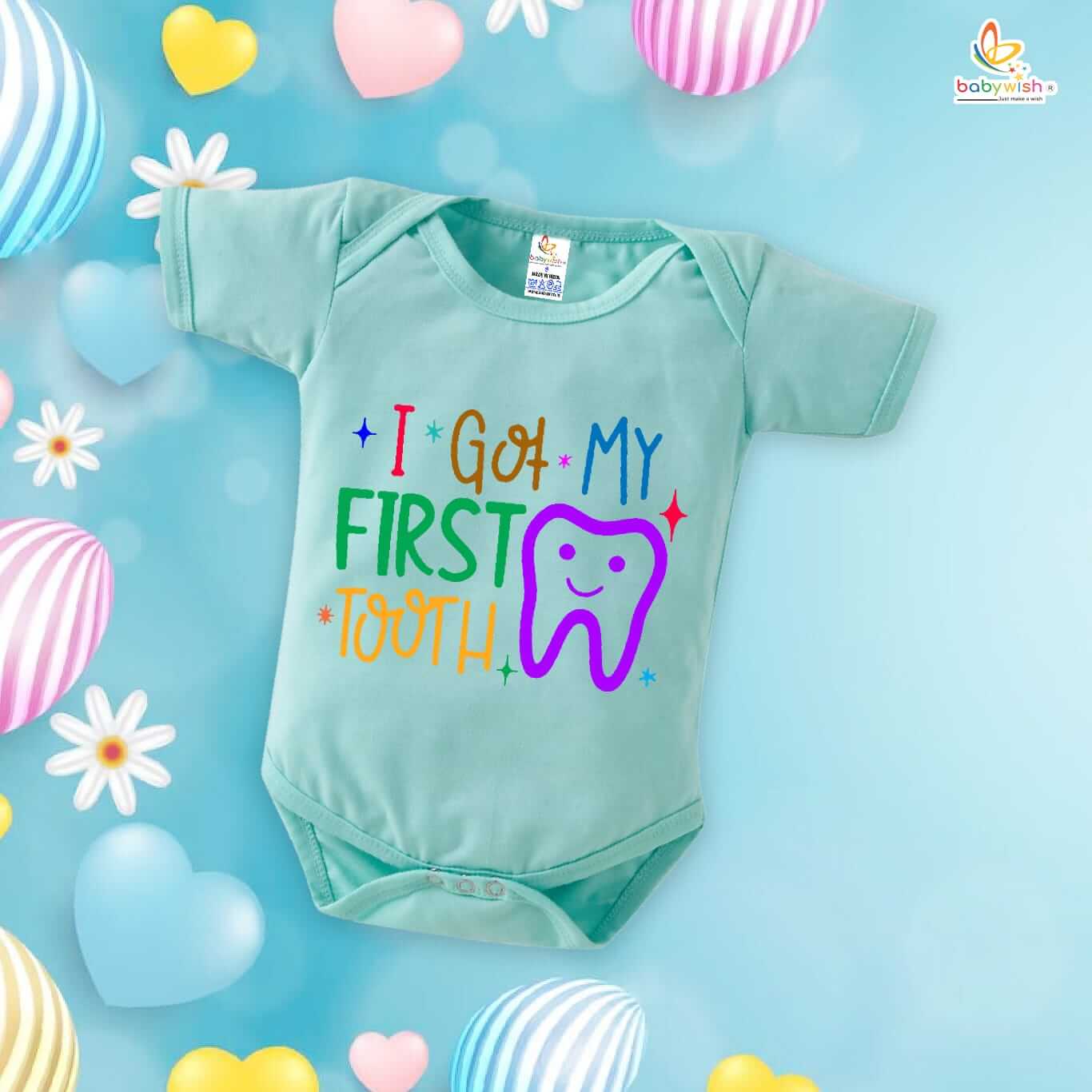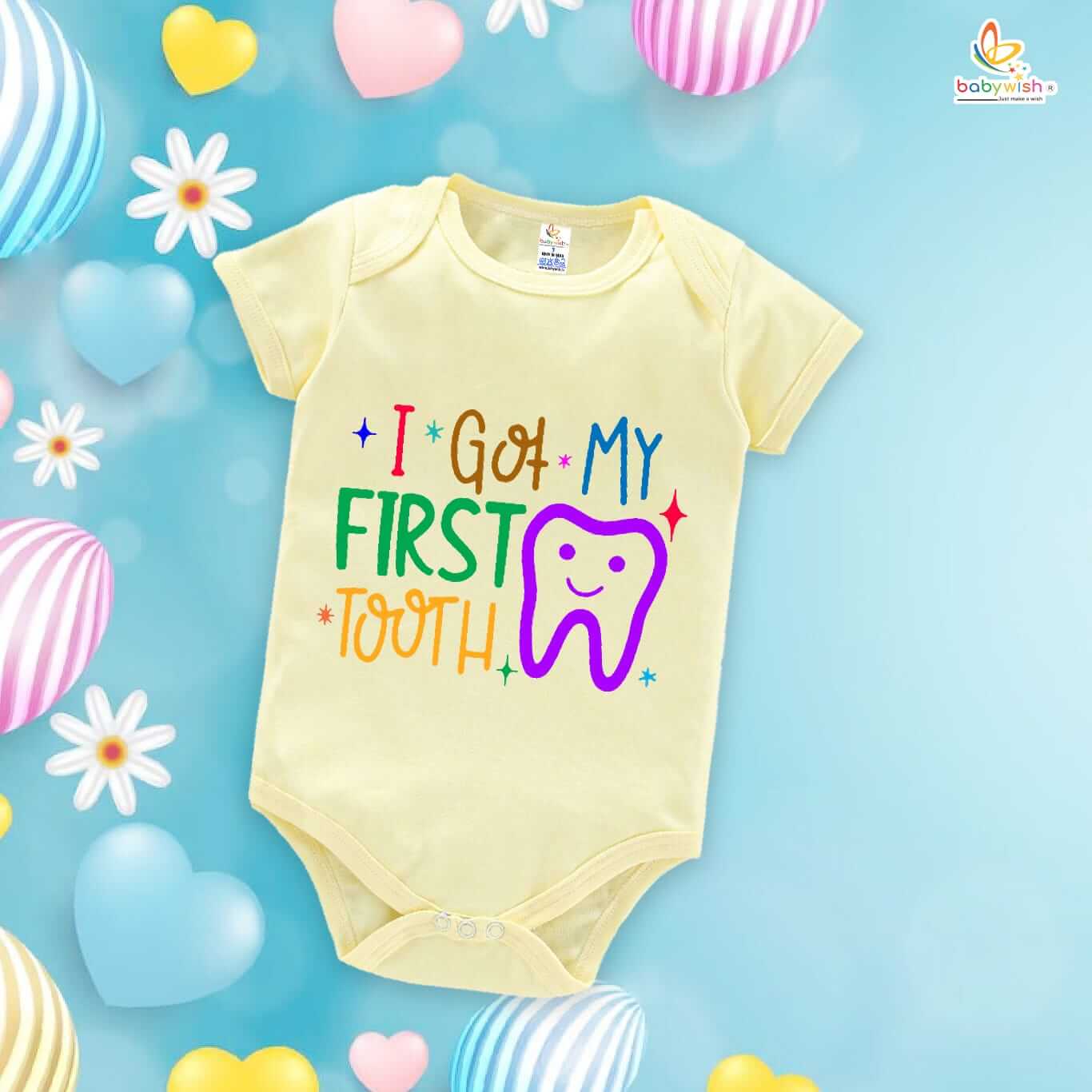 My First Tooth Baby Romper – “My 1st Tooth” Bodysuit with Tooth Fairy Print | Baby Milestone Outfit for Boys & Girls – Babywish