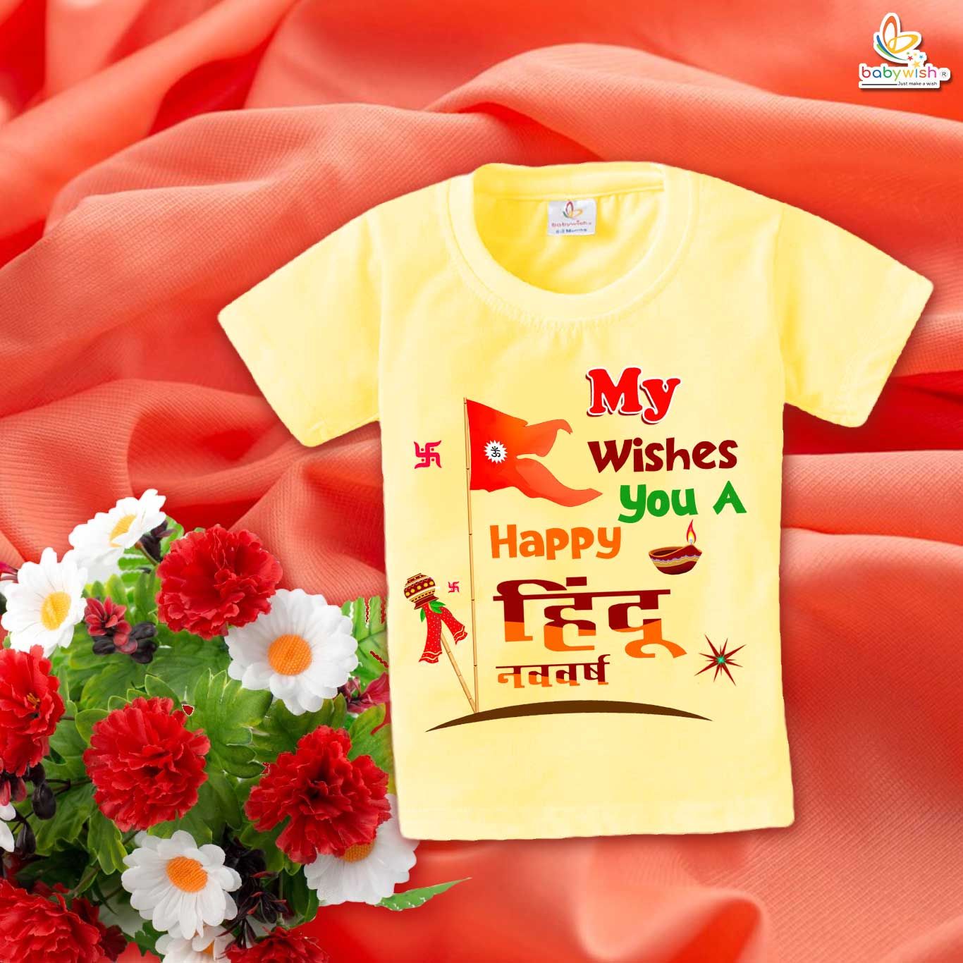 My First Gudi Padwa T-Shirt – Baby Hindu New Year Outfit with “Happy Nav-Varsh” Wishes | Traditional Festival Clothes for Infants by Babywish