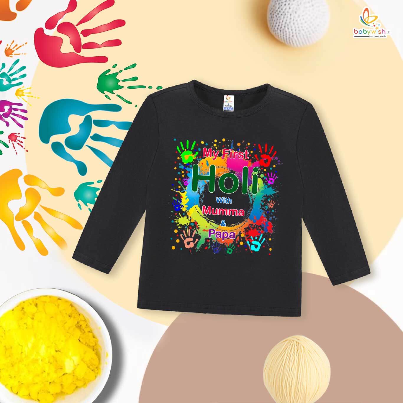 My First Holi Full Sleeve T-shirt – “Holi with Mumma” Baby Outfit for Boys & Girls – Babywish