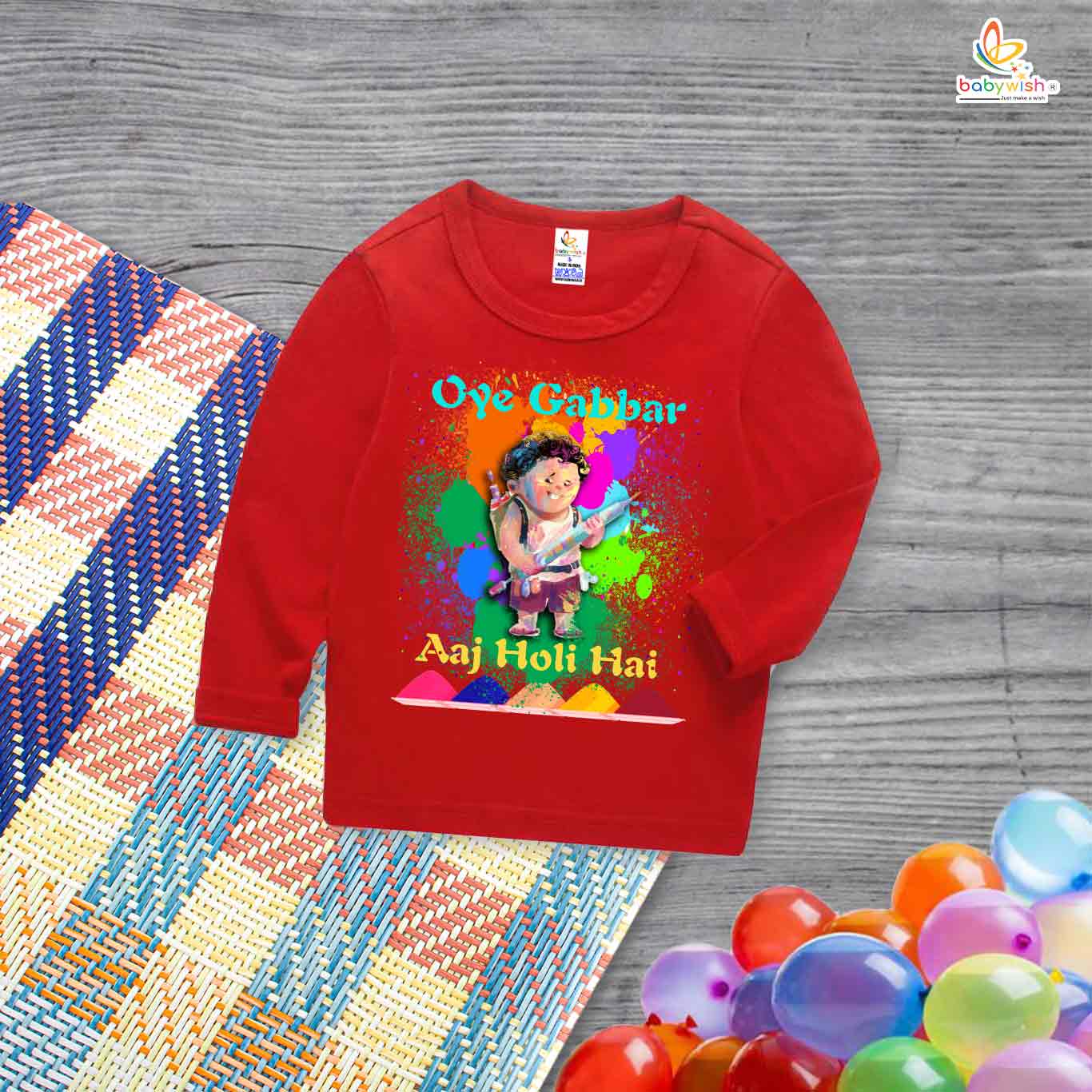 My First Holi Full Sleeve T-shirt – “Oye Gabbar Aaj Holi Hai” Baby Outfit for Boys & Girls – Babywish