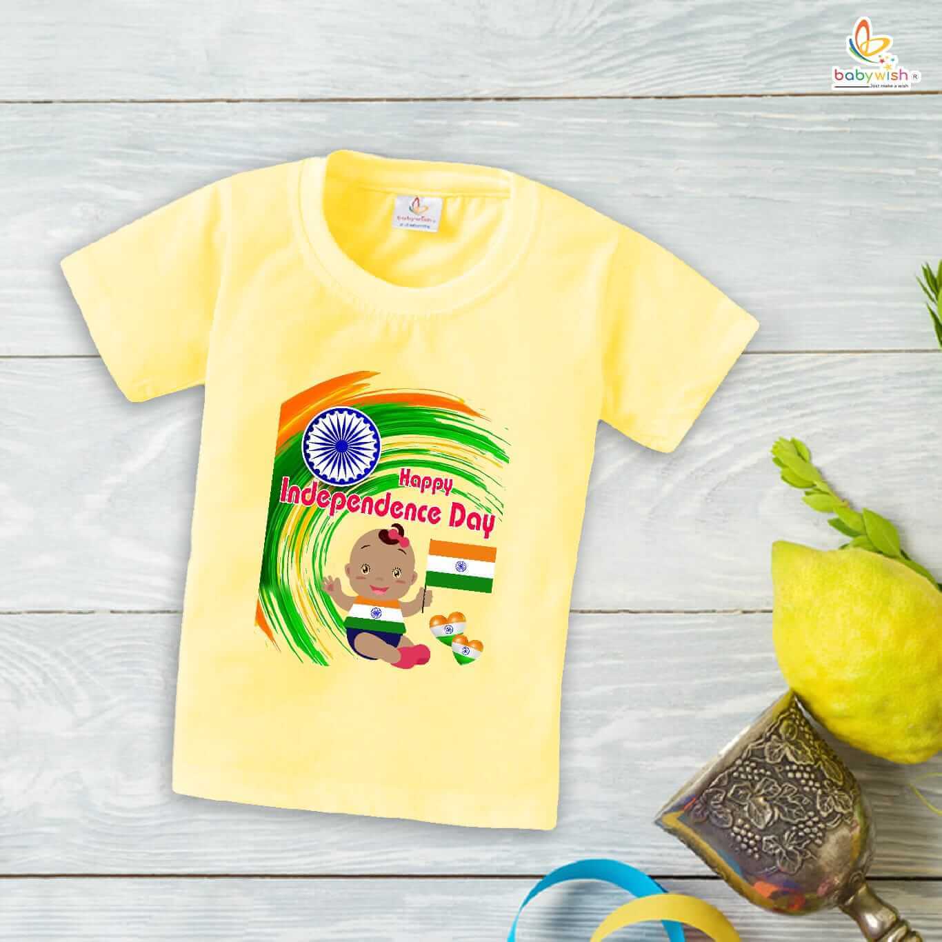 Independence Day T-Shirt for Boys and Girls – 15th August Celebration Tee, Comfortable Cotton Half Sleeve Topwear for Kids, Happy Independence Day – Babywish