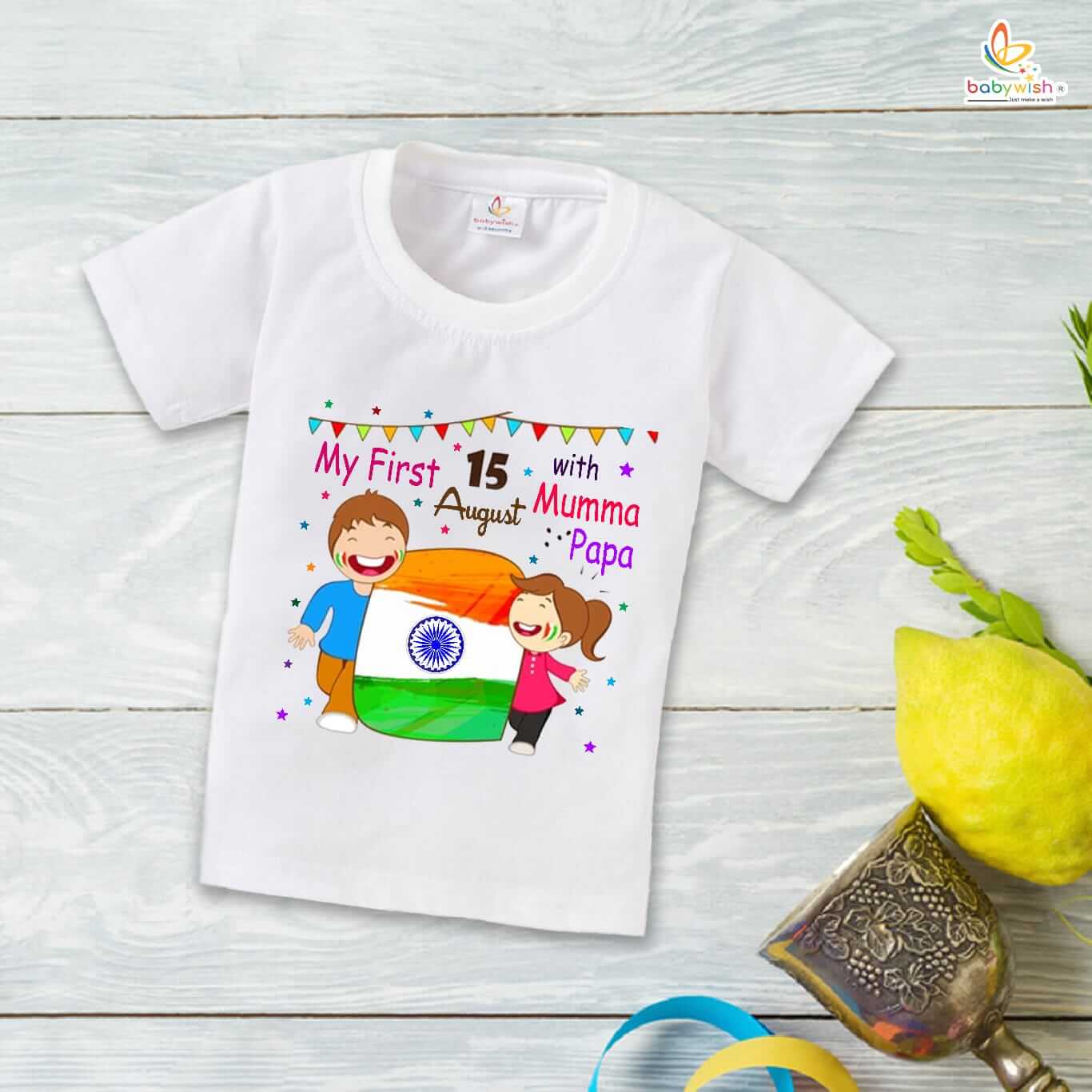 Independence Day T-Shirt for Boys and Girls – 15th August Celebration Half Sleeve Cotton Tee, Comfortable Party Topwear, Happy Independence Day – Babywish