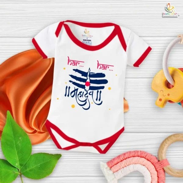 Bring divine energy, positivity, and comfort into your baby’s everyday wear with the Babywish Har Har Mahadev Trinetra Print Baby Bodysuit. Inspired by Lord Shiva, this spiritually meaningful bodysuit is thoughtfully designed for newborns and infants, blending traditional devotion with modern babywear comfort.