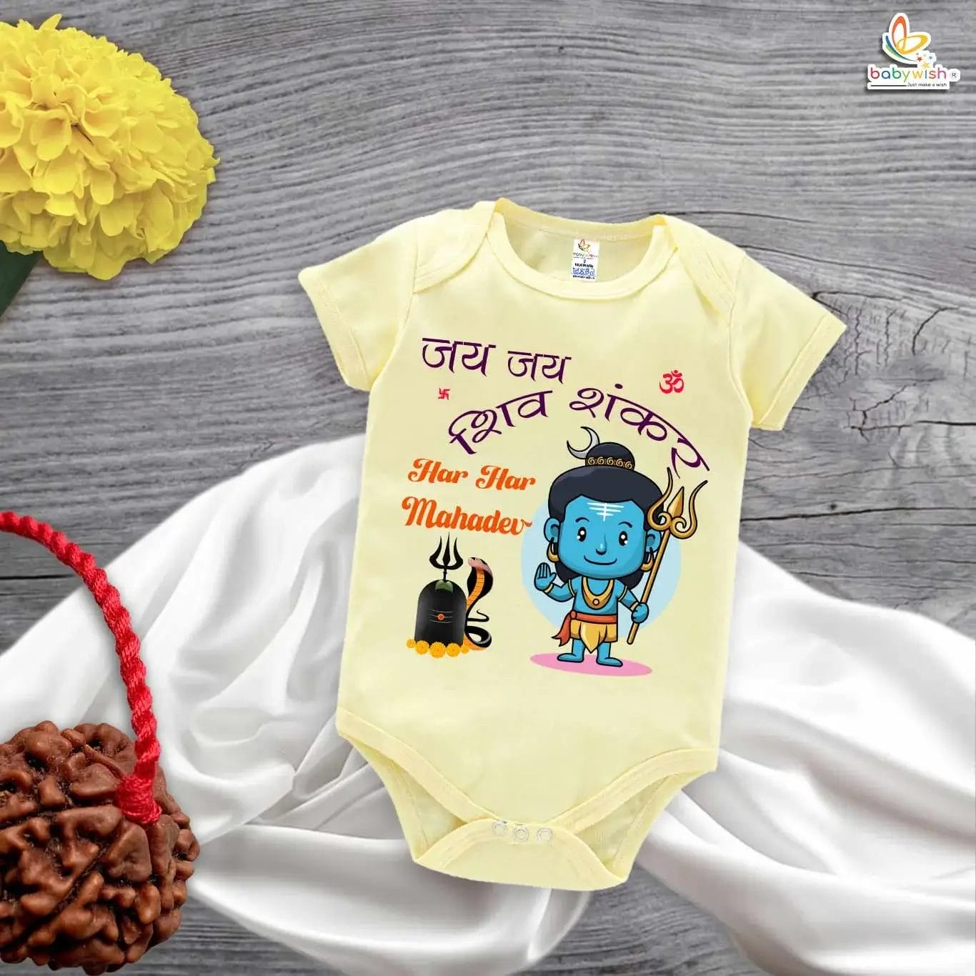 Ideal for Maha Shivratri celebrations, temple visits, festive events, photoshoots, or spiritual gifting, the Jai Jai Shiv Shankar Baby Romper by Babywish beautifully blends tradition, modern design, and baby-friendly comfort.