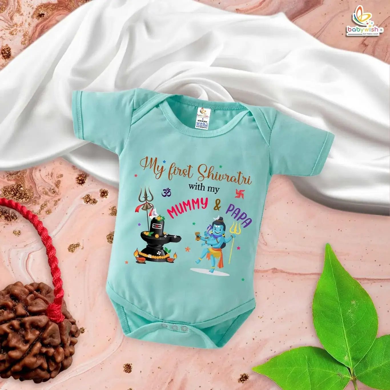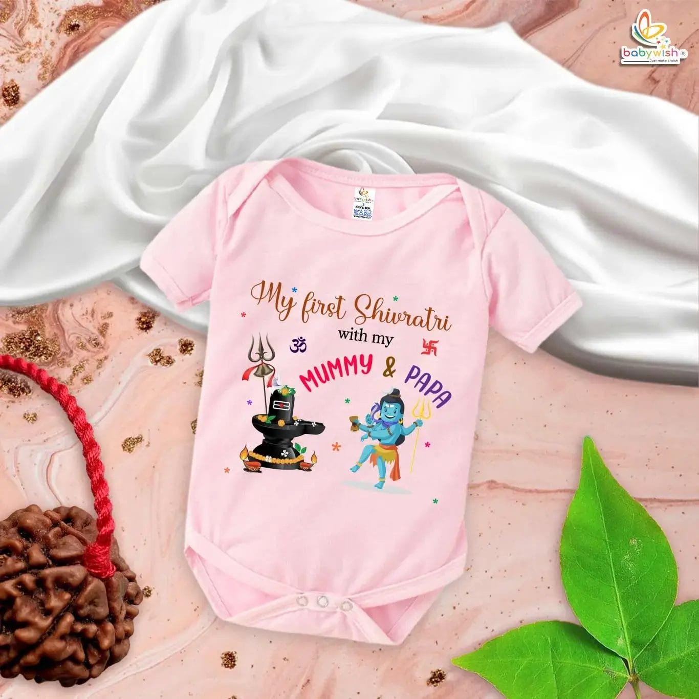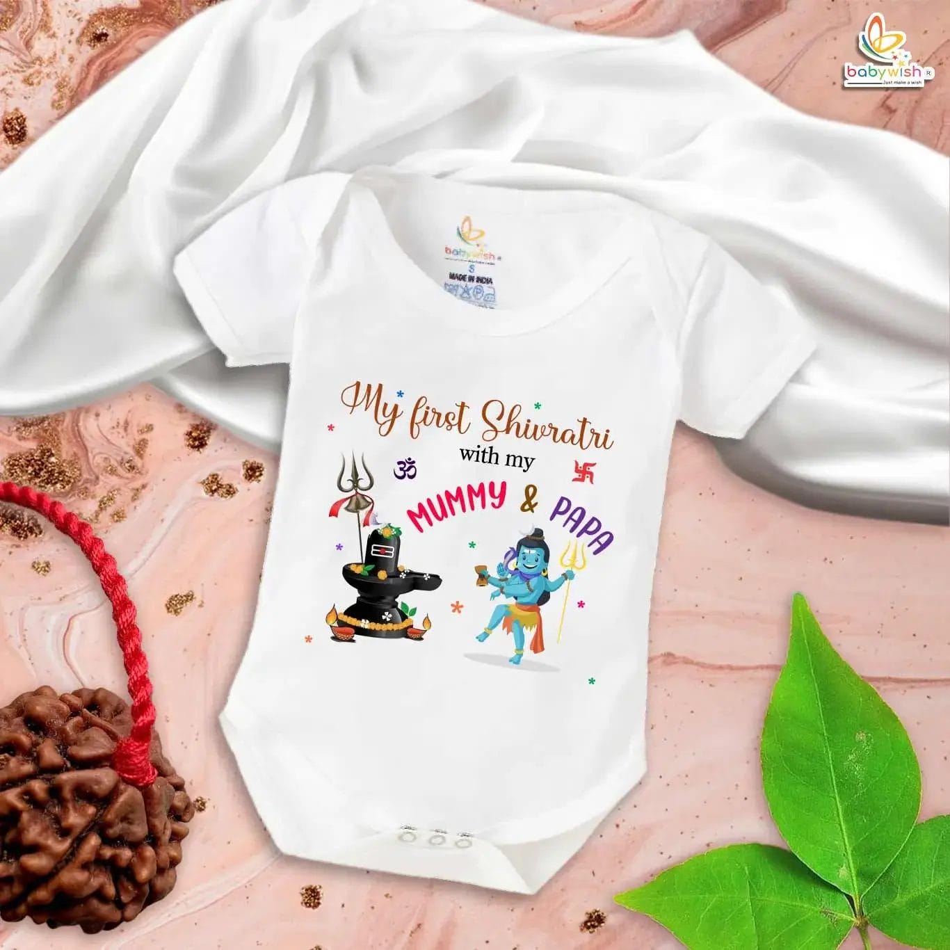My First Mahashivratri Baby Romper | Shivratri Bodysuit “My First Shivratri With Mummy & Papa” | Newborn Festival Outfit | Baby Hindu Clothes | Babywish