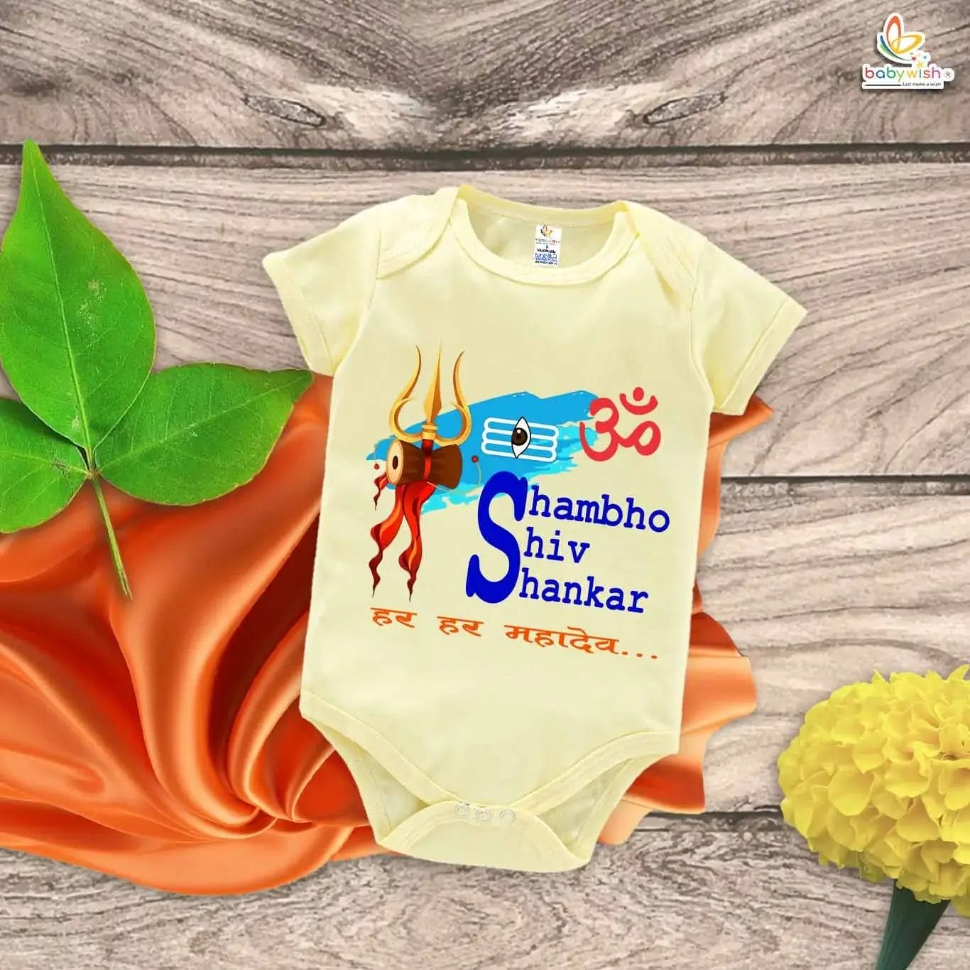 My First Mahashivratri Baby Romper | Om Shambho Shiv Shankar Baby Bodysuit | Newborn Mahashivratri Festival Outfit | Hindu Baby Clothes for Shivratri | Babywish