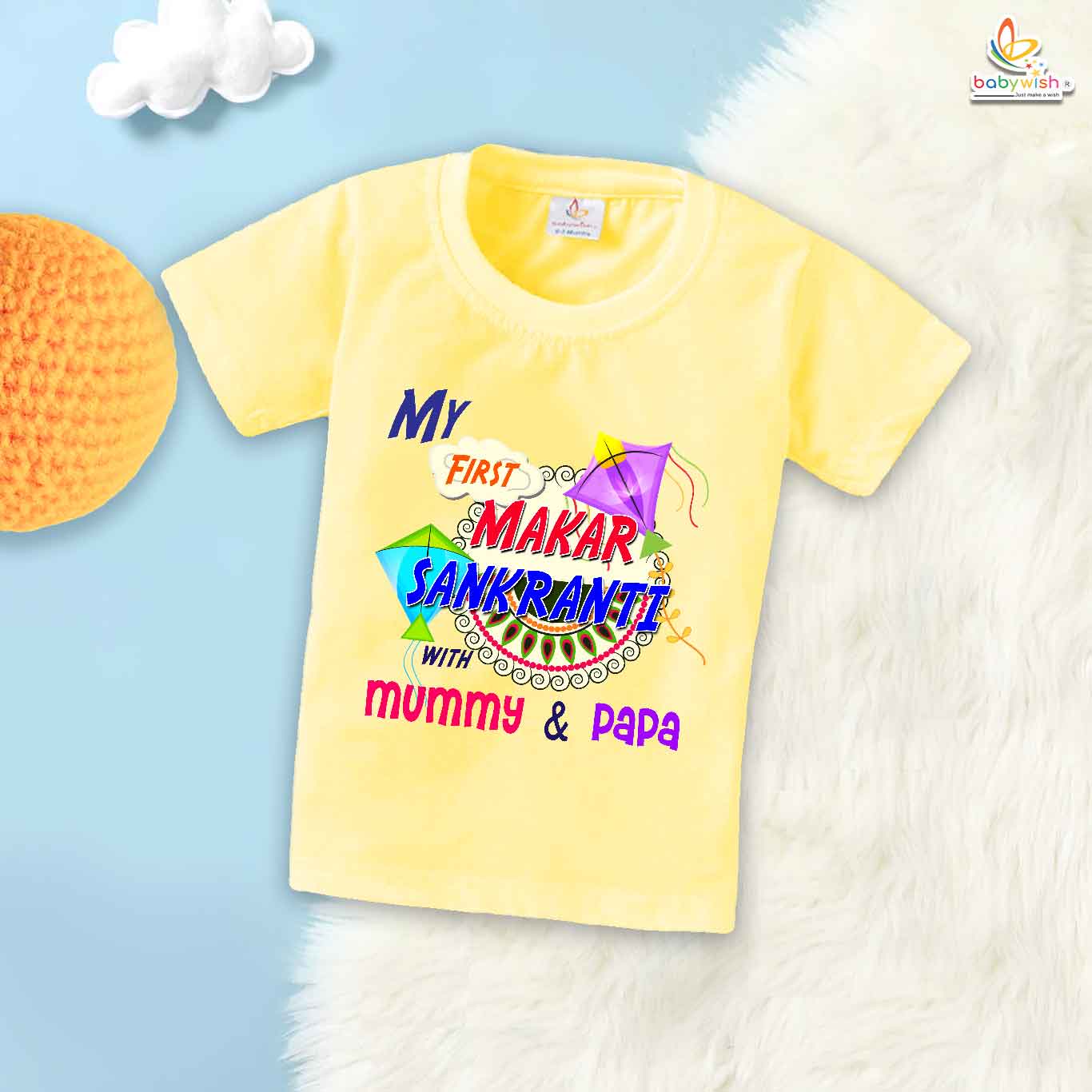 My First Makar Sankranti Baby T-Shirt – Cute Baby Outfit for Makar Sankranti Festival | Soft Cotton First Makar Sankranti T-shirt – Babywish