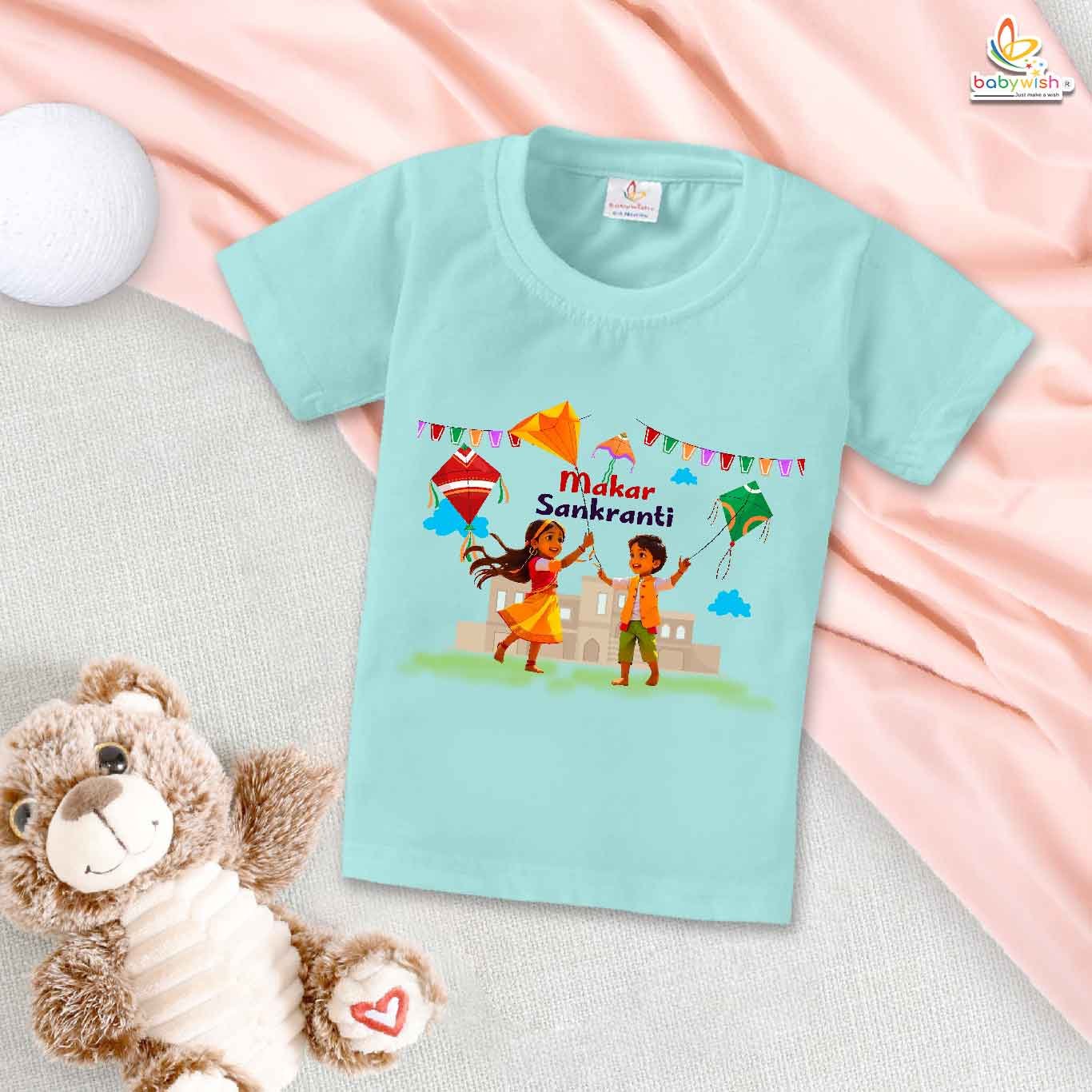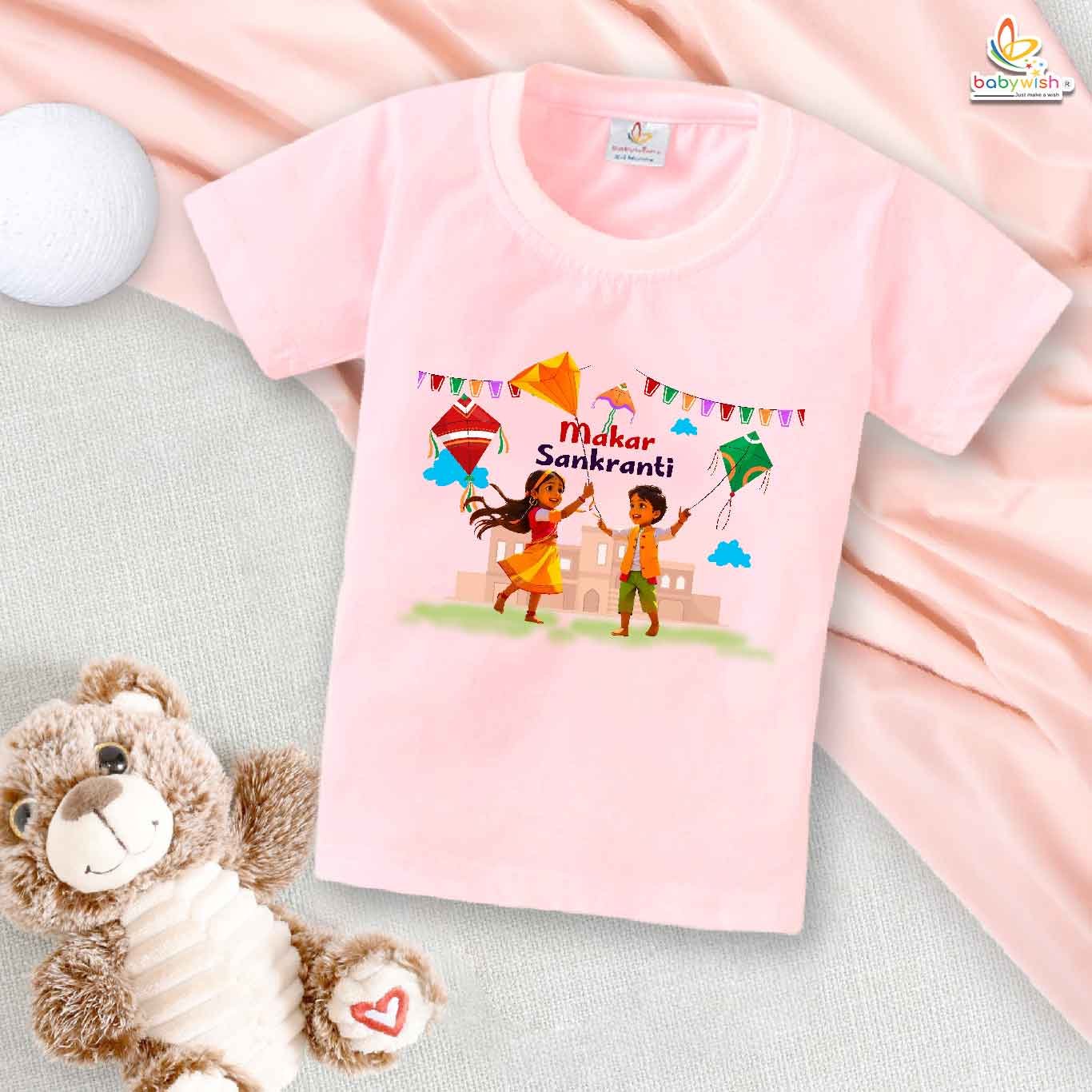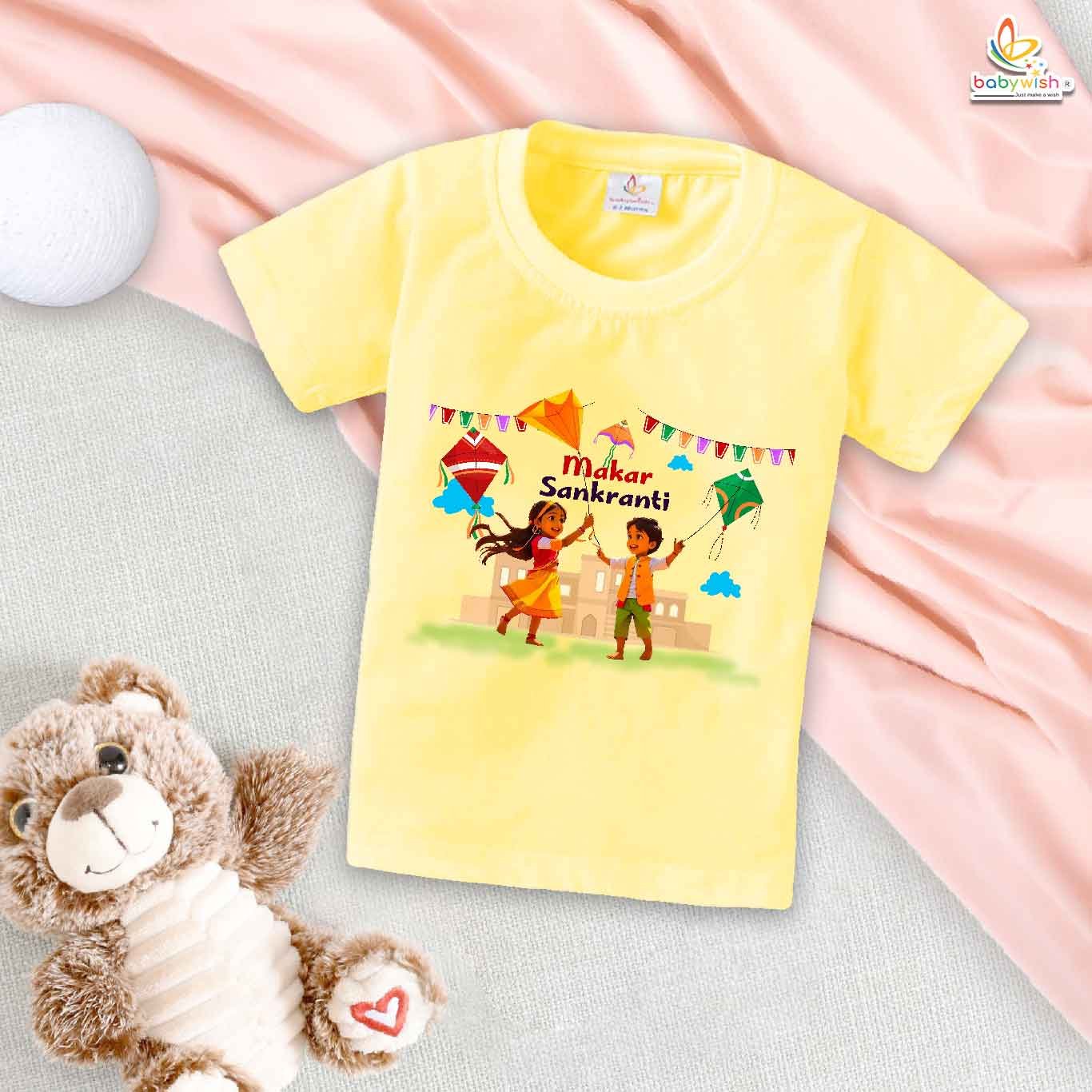 Makar Sankranti Flying Kite Print My First Makar Sankranti Baby T-Shirt – Cute Newborn & Infant Festival Outfit | Makar Sankranti T-shirt for Baby Boys & Girls – Babywish