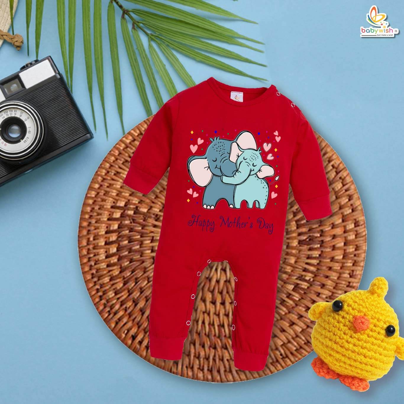 My First Mother’s Day Baby Romper – Full Body Elephant Mom and Baby Print Bodysuit for Newborn Infant Girl or Boy – Adorable Mother’s Day Gift Outfit – Babywish