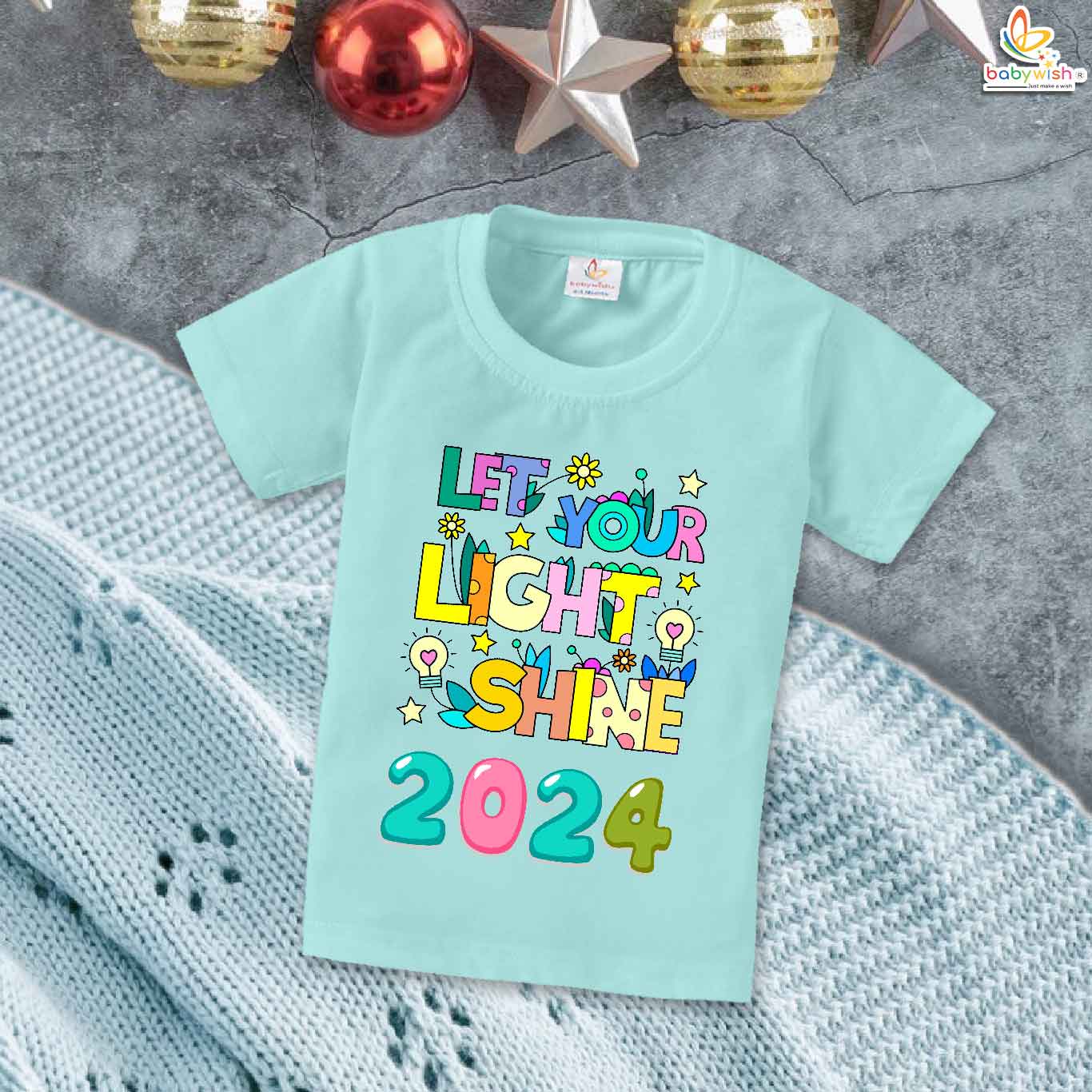 My First Happy New Year T-Shirt Let Your Light Shine Print | Unisex Half Sleeve Cotton Topwear Outfit | Cute Baby Boys & Girls Printed New Year Celebration Clothes Dress – Babywish