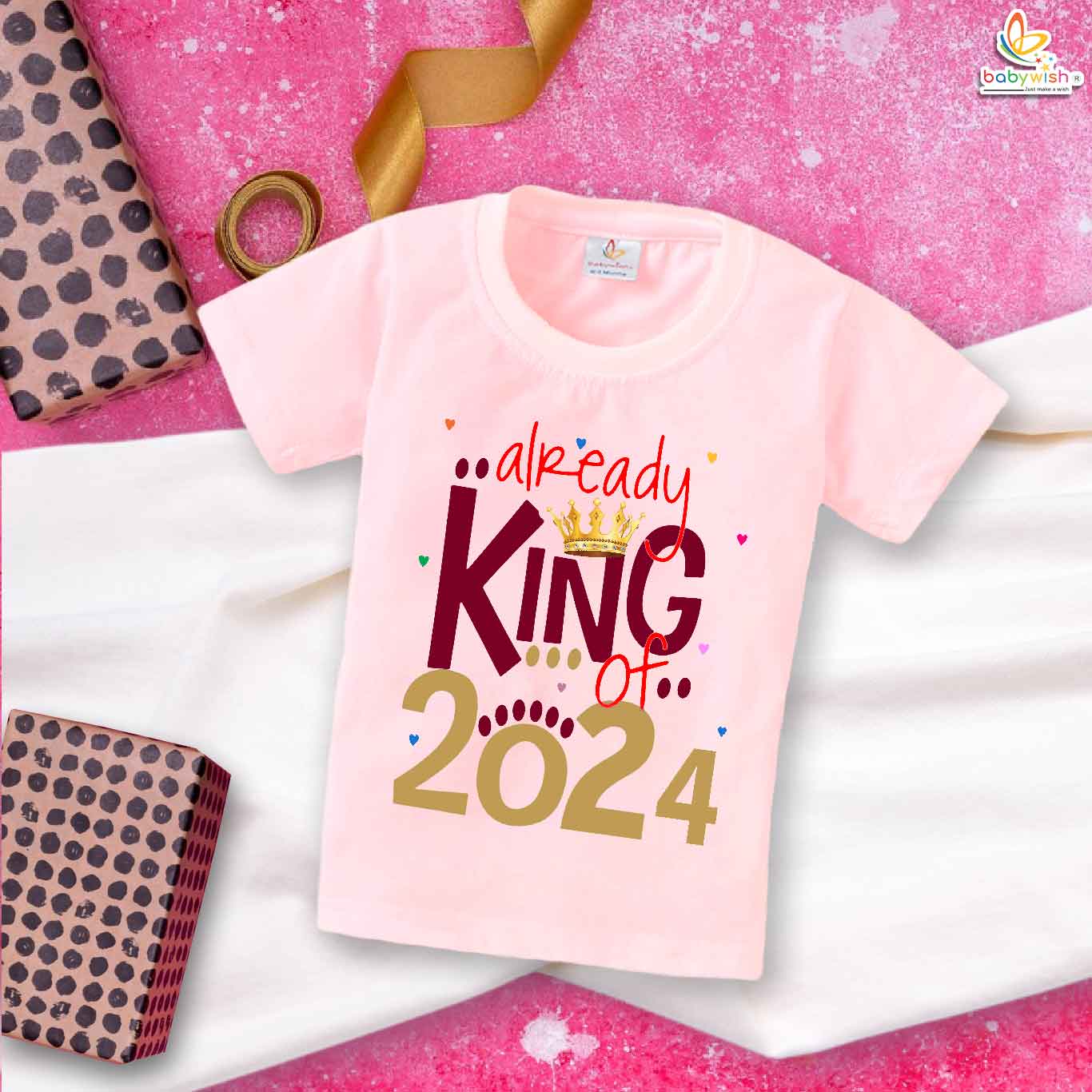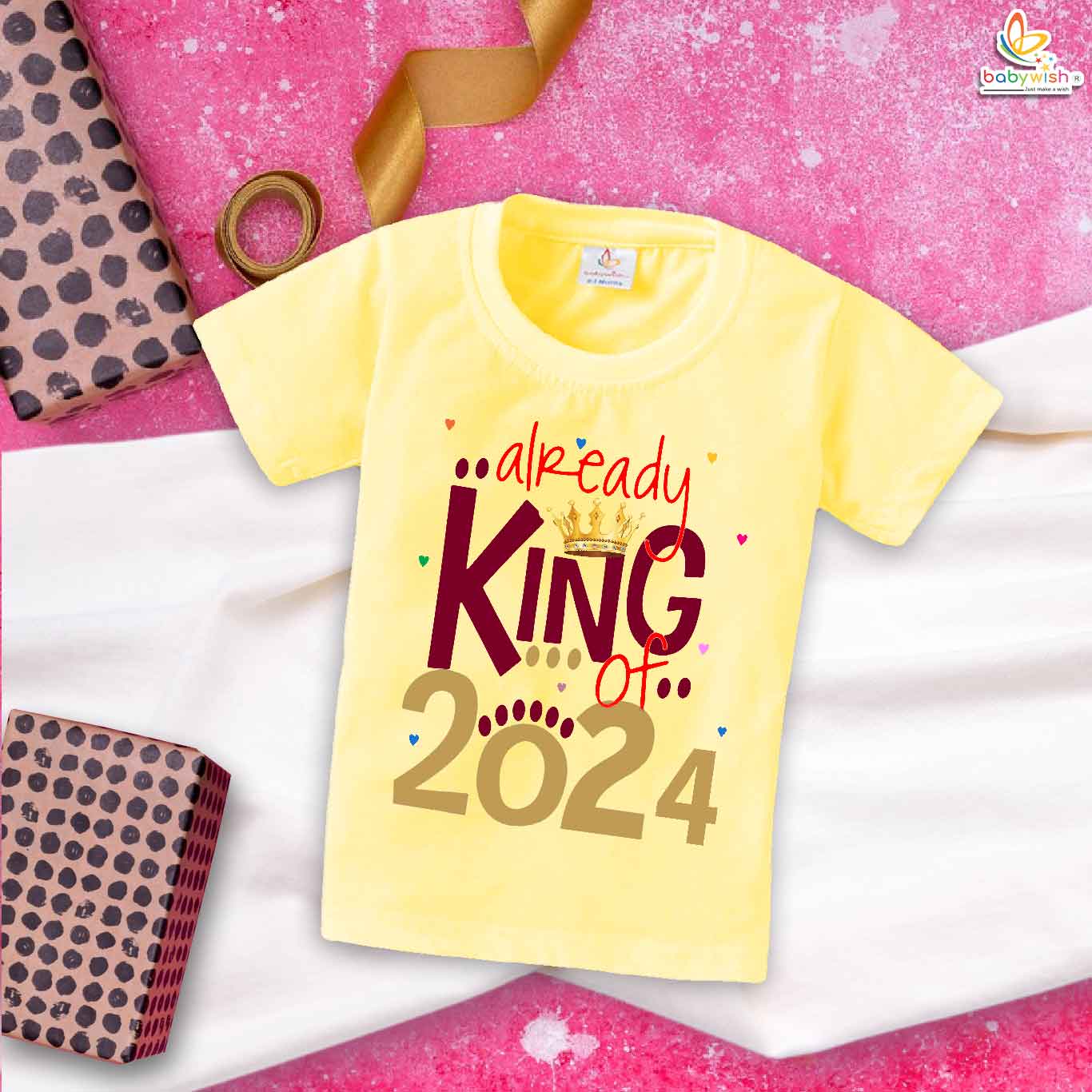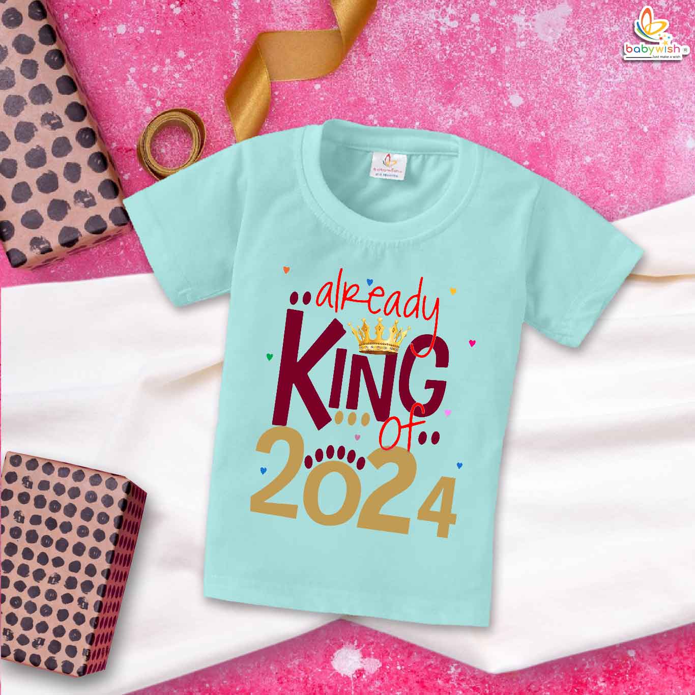 My First New Year T-shirt Already King of | Baby Boy & Girl Cotton Outfit | Half Sleeve Round Neck Topwear | Cute Infant Clothes for New Year Party & Celebration – Babywish