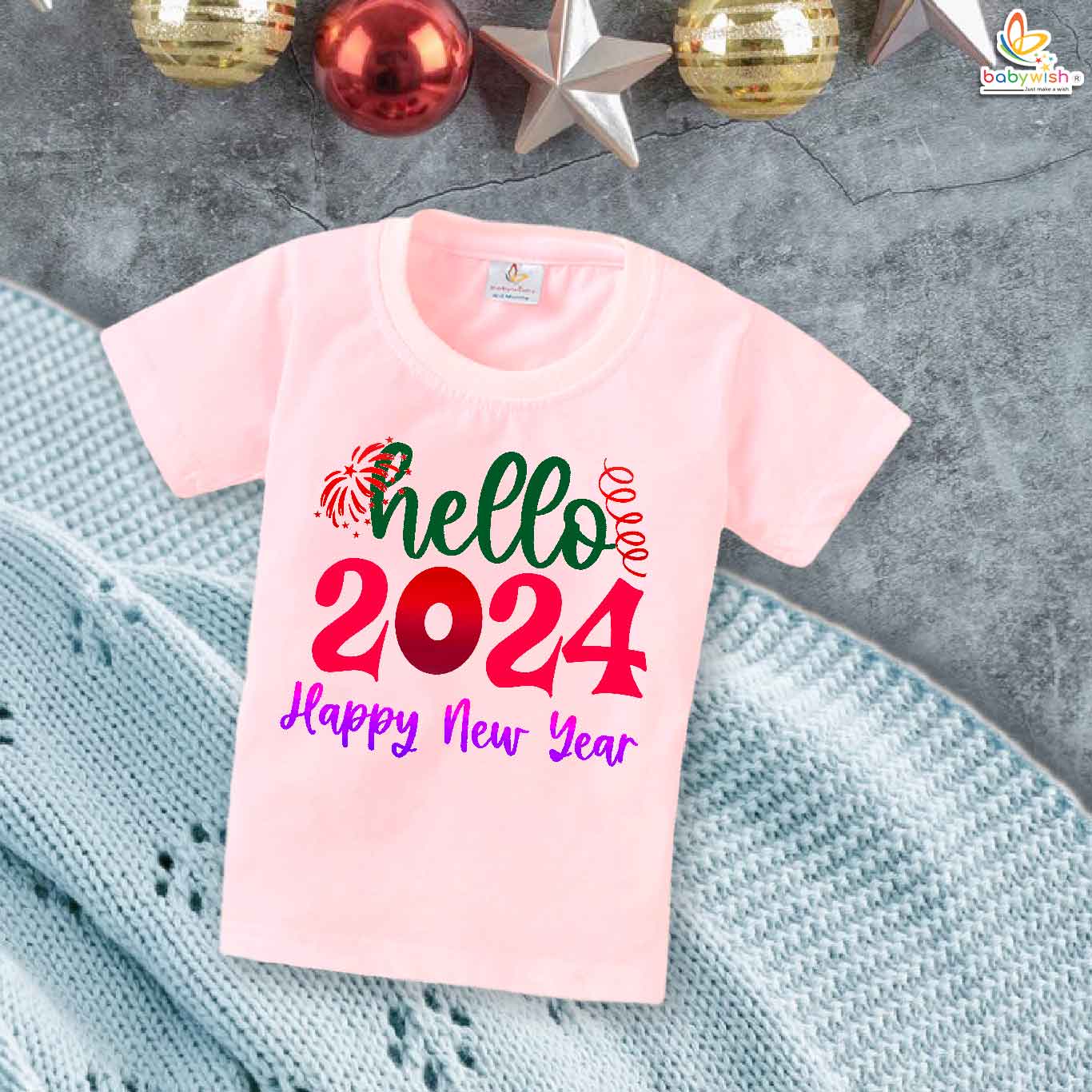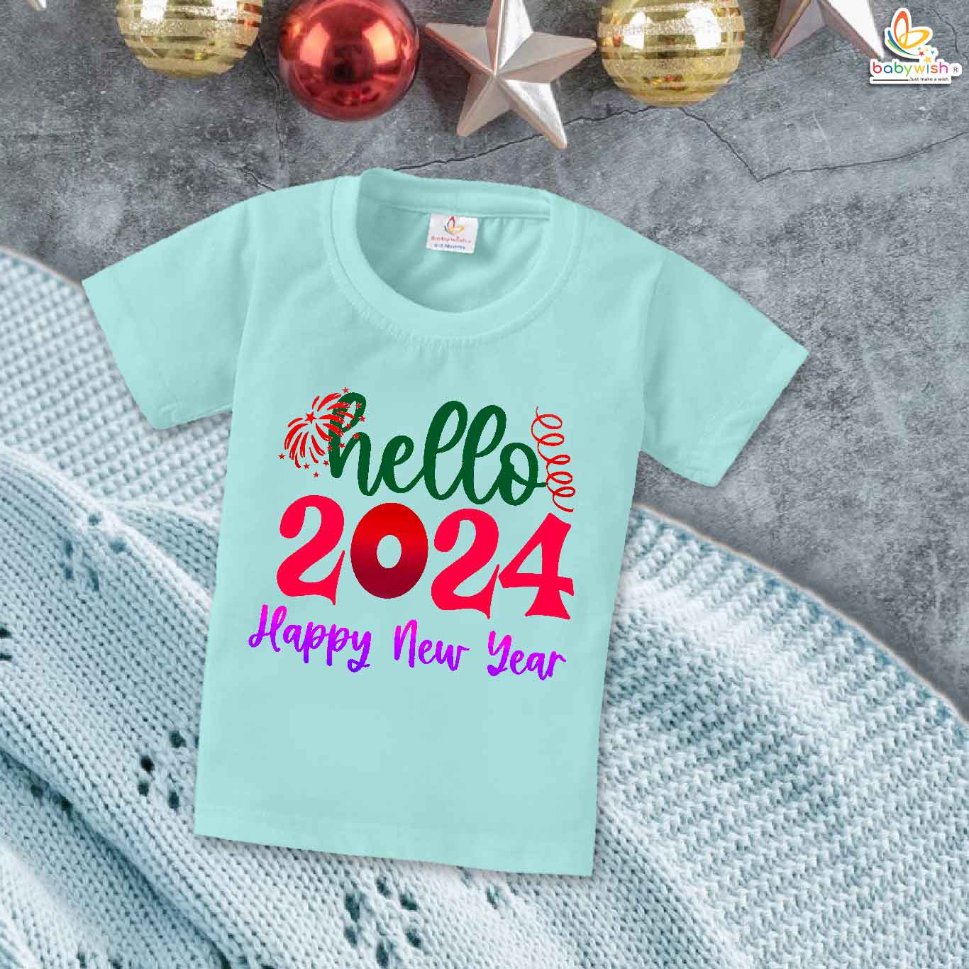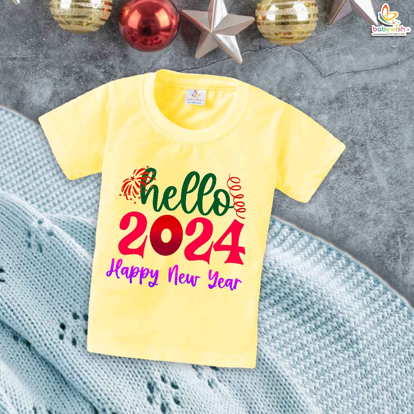 My First New Year T-shirt Hello Happy New Year | Cute Baby Outfit for Boys & Girls | Infant Party Wear Clothes | Printed Half Sleeve Cotton T-shirt for Baby’s First Celebration – Babywish