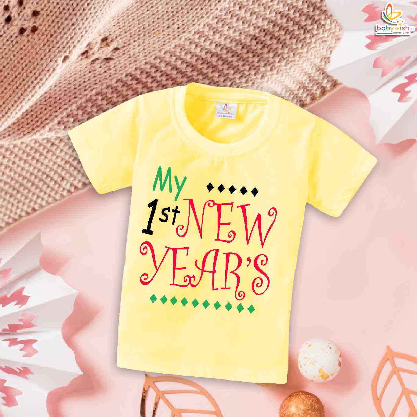 Stylish My First New Year T-Shirt for Baby Boys & Girls – Premium Soft Cotton Unisex Topwear Outfit, Festive Holiday Tee, Comfortable Nightwear & Perfect Baby Gift | Babywish