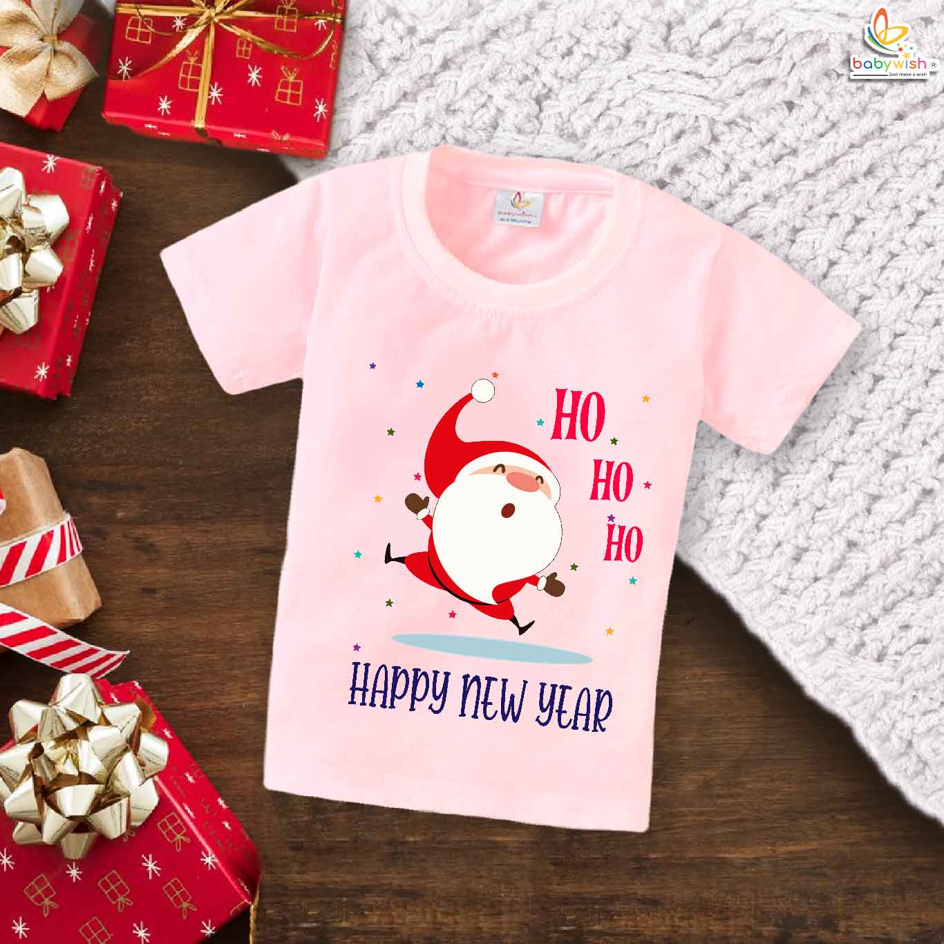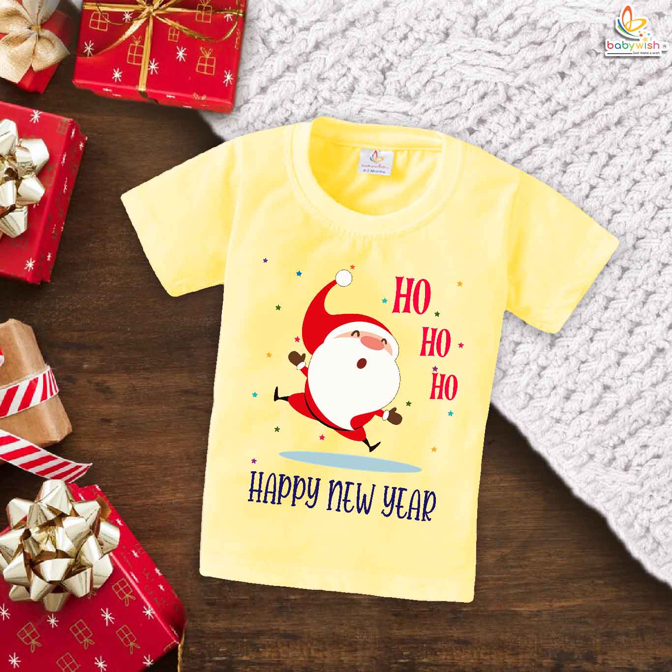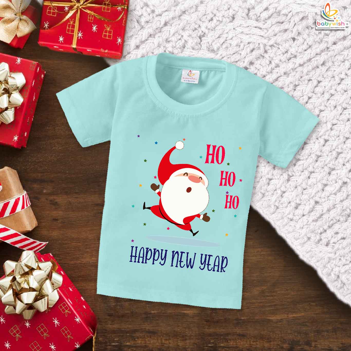 My First Happy New Year T-Shirt with Santa Print | Unisex Half Sleeve Cotton Topwear Outfit | Cute Baby Boys & Girls New Year Celebration Clothes Casual Dress – Babywish