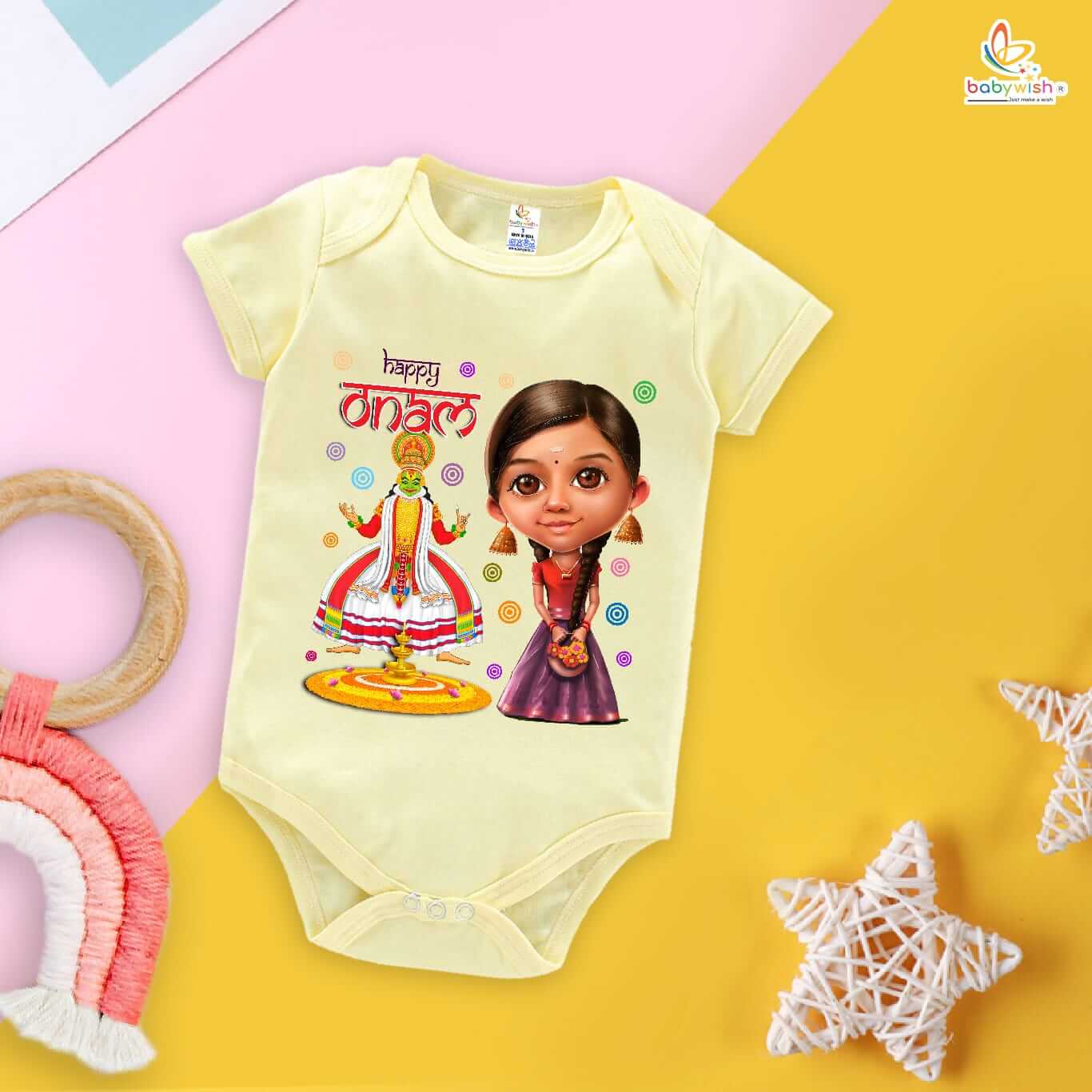 Onam Romper Brother Sister Matching Dress, Festive Kids Outfit for Boys and Girls, Cute Half Sleeve Onesie for Onam Celebration Babywish