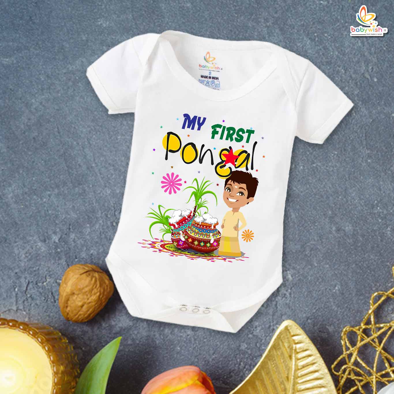 First Pongal My First Pongal Romper | Cute Newborn & Infant Bodysuit for Pongal Celebration | Baby Pongal Outfit for Boys & Girls – Babywish